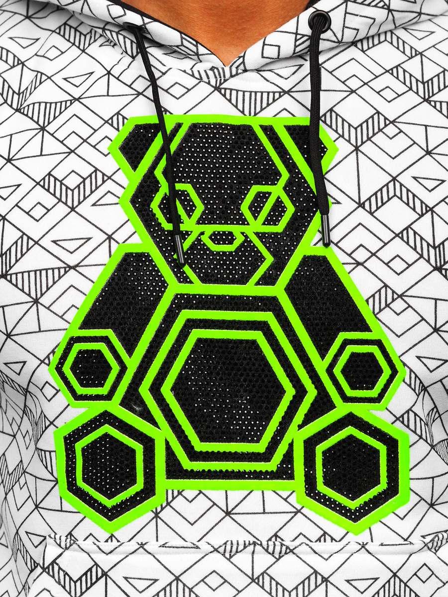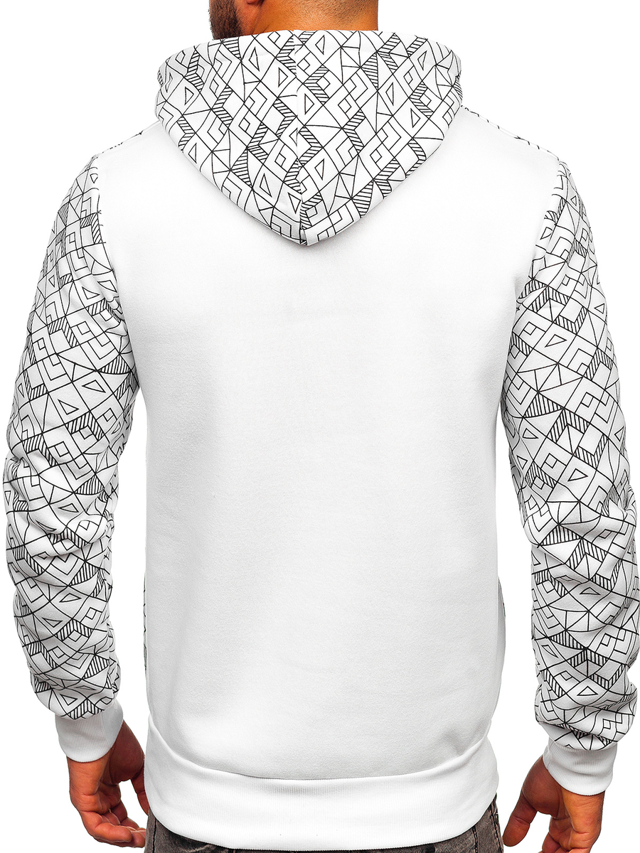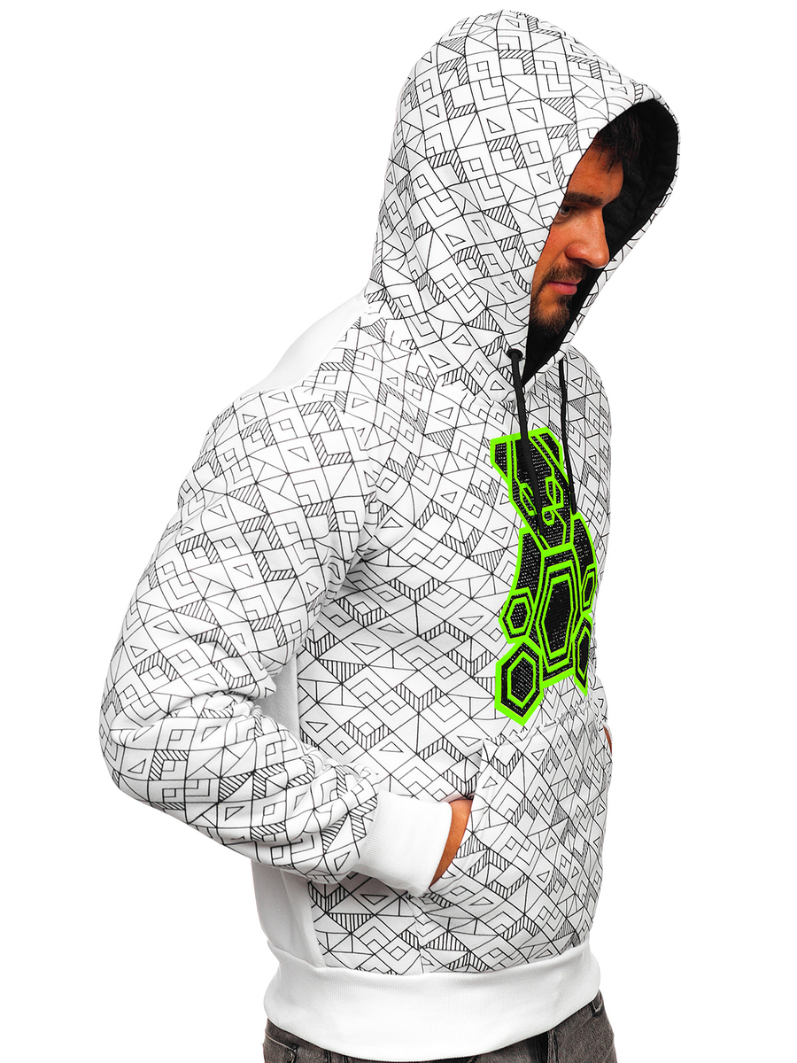 Отзиви и мнения на потребители за Бял с качулка мъжки суитшърт с апликация от цирконий Bolf HM566