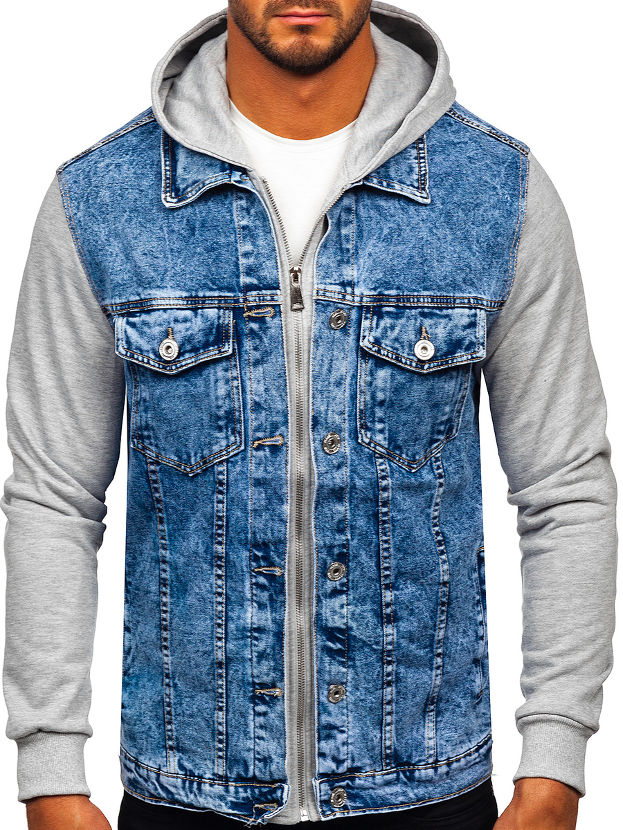 Синьо дънково мъжко яке с качулка Bolf HY1017