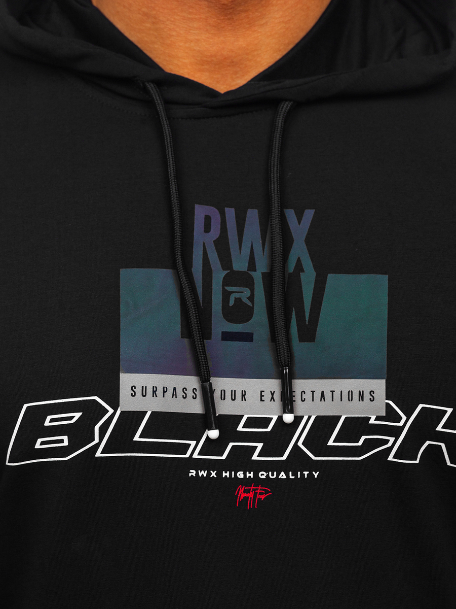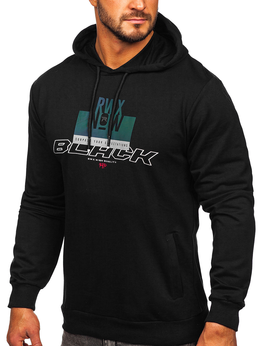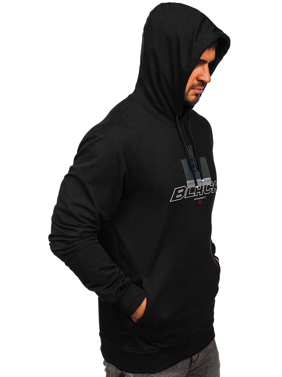 Черен мъжки суитшърт с принт и качулка Bolf 146347