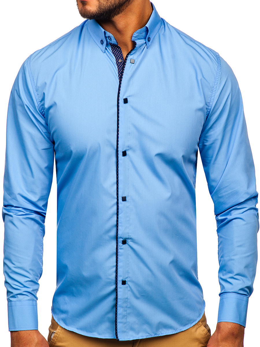 Тъмносини ризи с дълъг ръкав и контрастни детайли. Модна, удобна, чудесно качество. Тъмносинята мъжка риза slim fit Bolf ще изглежда чудесно с дънки и чино. Има яка с копчета. Подходяща за всекидневни стилизации.