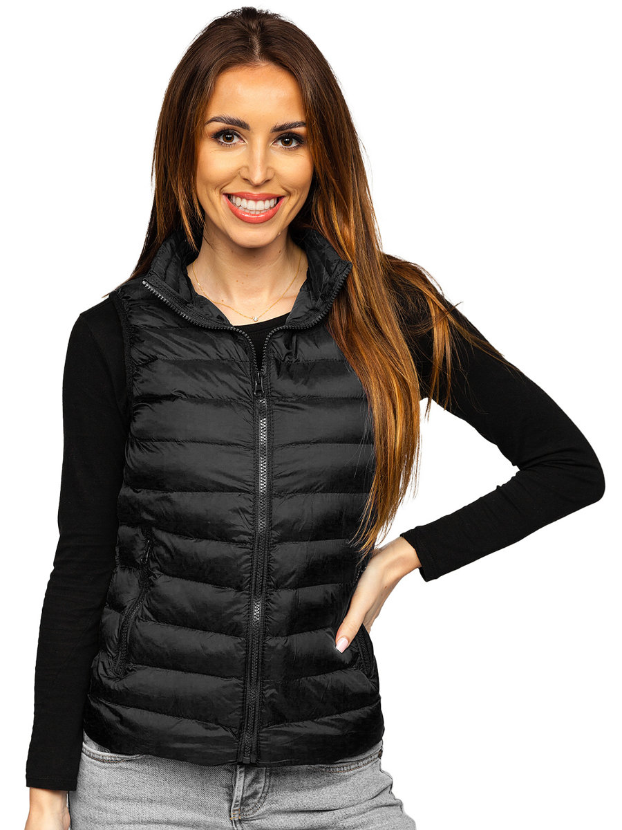 Дамският черен капитониран елек Bolf 23077 е идеален за създаване на спортни облекла. Този елек с класическа кройка ще бъде чудесна алтернатива на яке през есенния и пролетния сезон, осигурявайки защита от студ и вятър. Този модел е с цип и има висока яка. Двата външни джоба с ципове му придават практичен характер. Изработен е от 100% найлон, така че ще се чувствате изключително комфортно в него. Ще изглежда страхотно в комбинация със спортни панталони, създавайки спортен, свободен тоалет. Добре се съчетава и с дънки. Можете да го носите всеки ден върху суитшърт или тениска!
