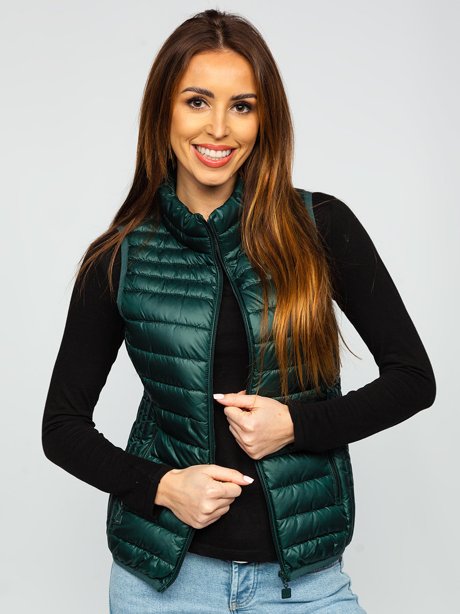Дамският зелен ватиран елек от Bolf B2705 ще бъде идеален за създаване както на спортни, така и на градски стилизации. Капитонирането по цялата повърхност му придава спортен характер. Закопчава се с цип и има два външни джоба с ципове, които му придават практичен характер. Изработен е от 100% найлон, което го прави изключително удобен. Този елек с класическа кройка ще бъде чудесна алтернатива на якето през есенния и пролетния сезон. Елекът може да се използва като основа за много модни стилизации. Ще изглежда страхотно с долнище и суичър , създавайки спортен, свободен outfit. Перфектно се съчетава също и с дънки и T-shirt.