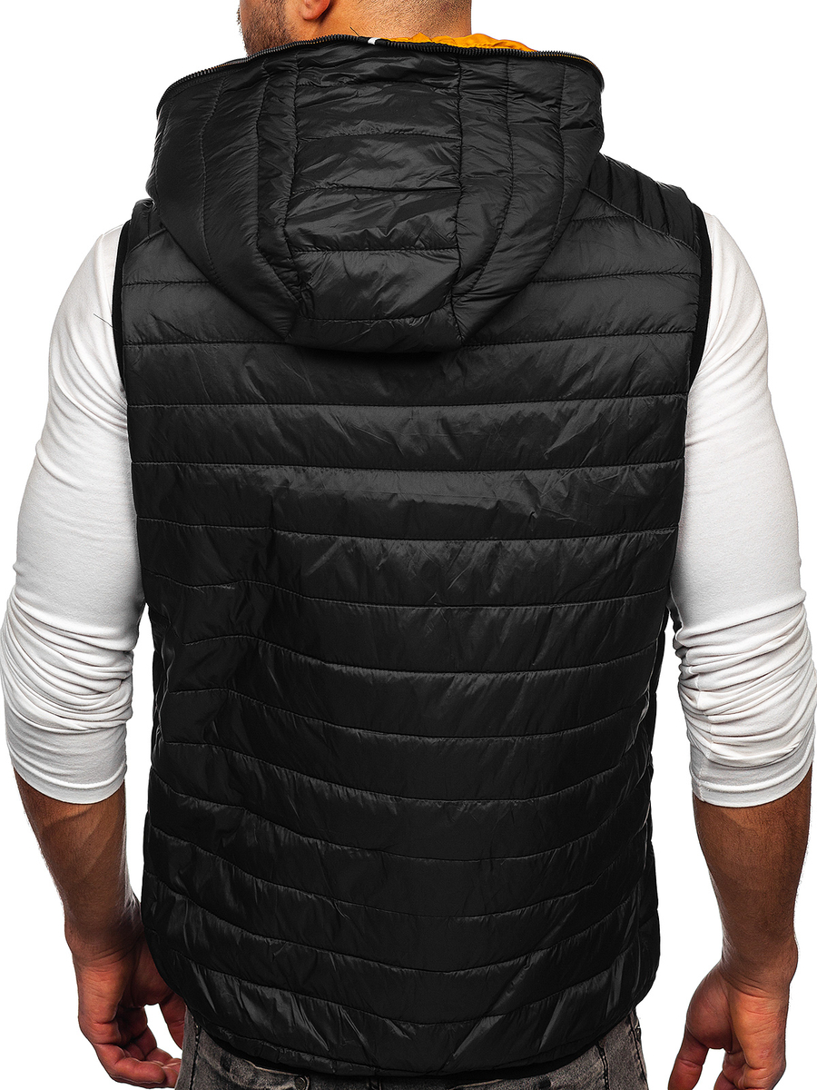 Дамският черен капитониран елек с качулка Bolf 7106 е идеален за създаване на спортни и градски тоалети. Този елек с класическа кройка ще бъде чудесна алтернатива на яке през есенния и пролетния сезон, осигурявайки защита от студ и вятър. Продуктът се закопчава с цип и има качулка. Двата външни джоба с цип му придават практичен характер. Има също два вътрешни джоба без закопчаване. Долният подгъв е завършен с еластична веревна лента. Изработено от 100% полиестер. Елекът може да се използва като основа за много модни стилизации, той успешно ще замени преходното яке. Ще изглежда страхотно с долнище и суичър , създавайки спортен, свободен outfit. Перфектно се съчетава също и с дънки и джогъри.