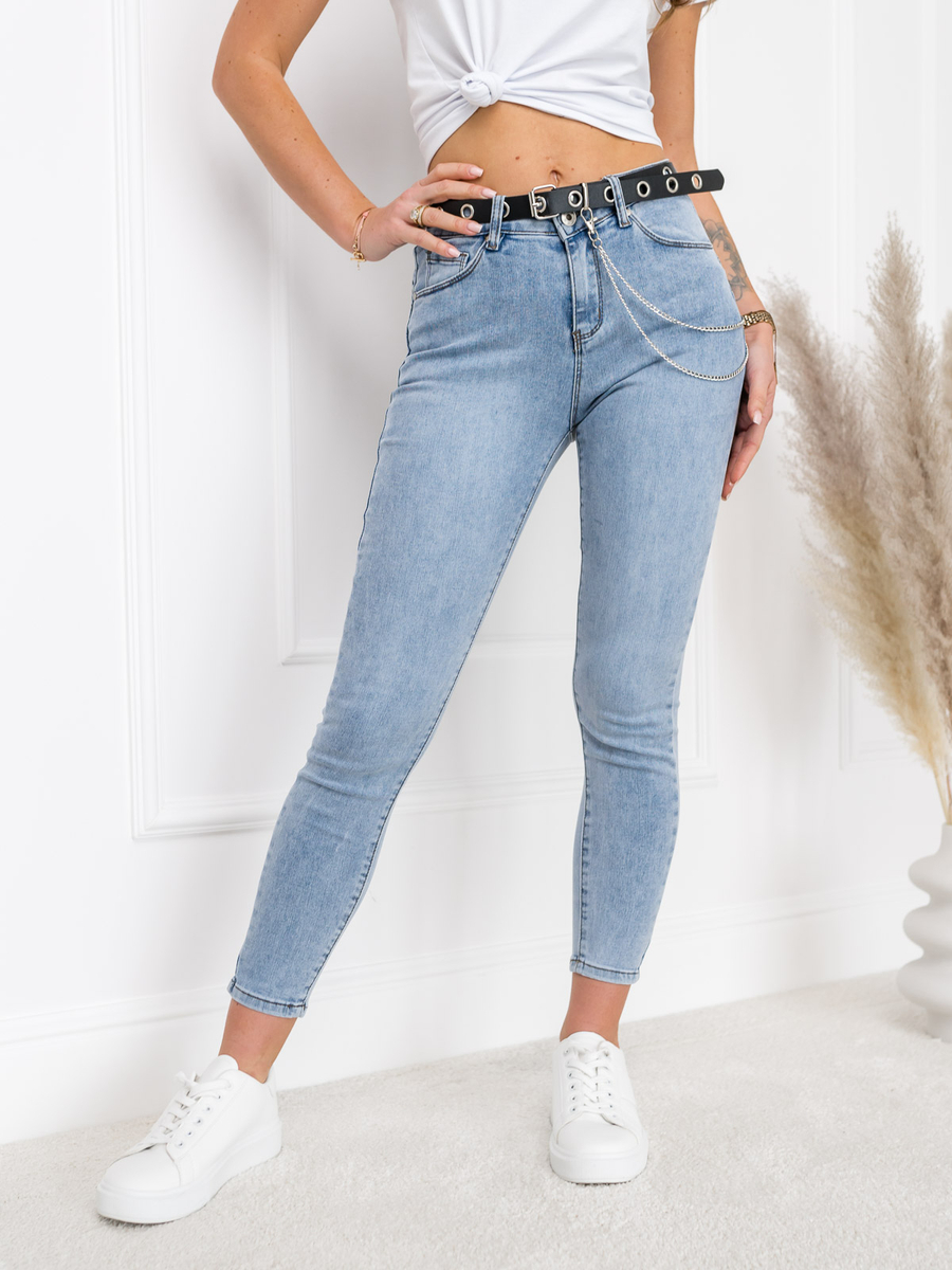 Дамските сини дънки Bolf LA691 са дънки тип Regular, които перфектно подчертават женската фигура. Има много практични джобове - три отпред и два отзад. Уникален вид им придават модните протърквания и декоративния колан. Ушити са от 76% памук, 22% полиестер, 2% еластан. Панталоните от деним са универсална основа за изграждане на ежедневни стилизации. Перфектно подчертават женската фигура. Можеш да ги облечеш на разходка, пазаруване или излизане с приятели. Чудесно се комбинират с тениска, кожено яке или суитшърт.