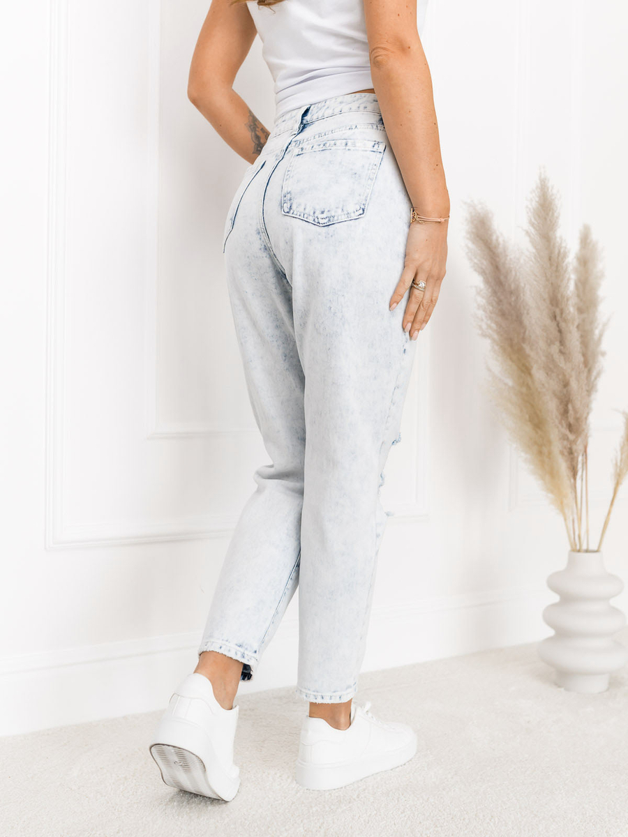 Небесносините дамски дънки mom fit Bolf WL2102 перфектно подчертават женската фигура. Уникален вид им придават модните протърквания и избелял ефект на крачолите. Изработени са от 98% памук и 2% вискоза, което ги прави изключително удобни.Панталоните от деним са универсална основа за изграждане на ежедневни стилизации. Можеш да ги облечеш на разходка, пазаруване или излизане с приятели. Чудесно се комбинират с тениска, кожено яке или суитшърт.