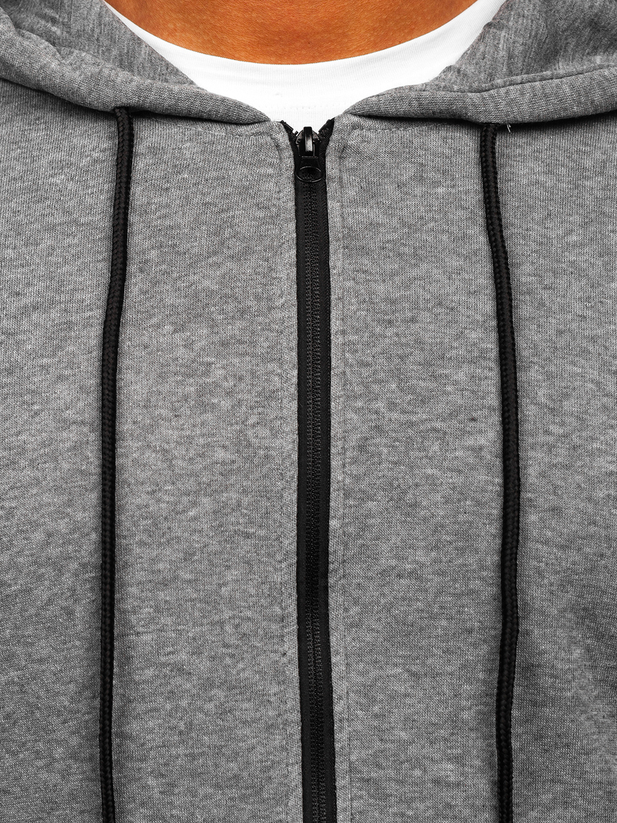 Тъмносив мъжки суитшърт с качулка и цип Bolf HW2787 е задължителен в мъжкия гардероб. Суичърът се закопчава с цип, има висока яка и качулка . Благодарение на ръкавите, завършени с маншет, суичърът пасва идеално на всяка фигура. Двата странични джоба му придават практичен характер . Най-висококачествените материали, 6 5% памук и 35% полиестер, ще ви осигуряват комфорт всеки ден. Перфектен в комбинация със спортни панталони , създавайки спортно облекло. Комбинирайте го с тениска , джогъри и кожено яке за визия тип вечна класика.
