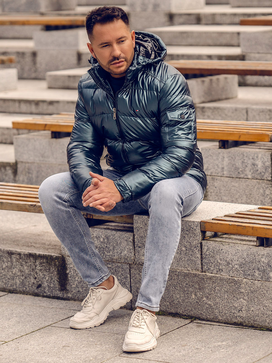 Зелено капитонирано зимно мъжко спортно яке Bolf EX2138