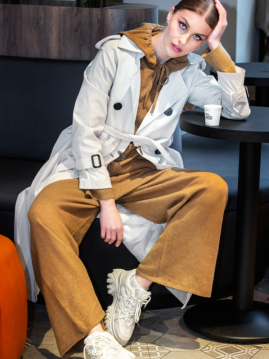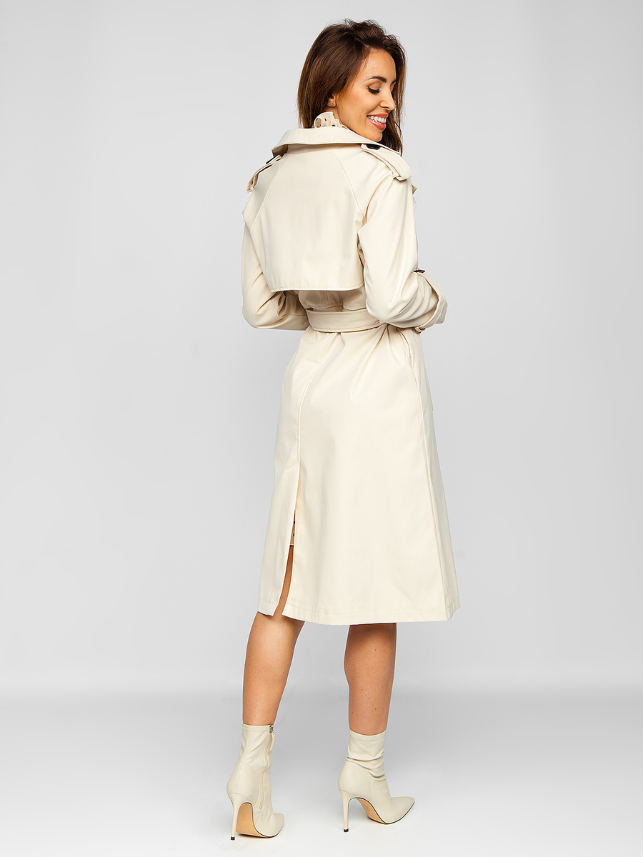 Бежов дамски дълъг шлифер с колан 2 в 1 Bolf AG3011