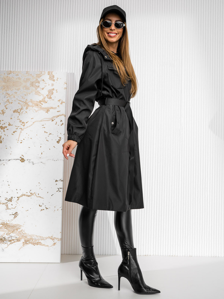 Дамското черно дълго преходно яке с качулка Bolf AG5019 е нашето надеждно предложение за преходния сезон. Практично яке с качулка, с тик-так копчета Това е много практичен шлифер с колан. Има два външни джоба с тик-так копчета и малък джоб с цип на гърдите . Много качествена материя, дава усещане за комфорт и удобство при носене. В него ще изглеждате прекрасно, независимо от обстоятелствата. По време на вечерно излизане в града, го съчетайте с дънки и пуловер или рокля, които ще придадат на стайлинга ви елегантен характер.