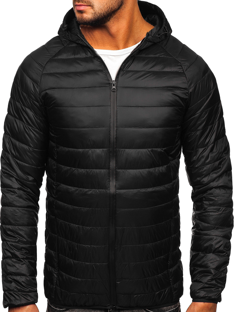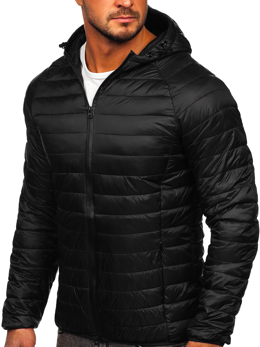 Черно капитонирано мъжко преходно спортно яке Bolf HM112