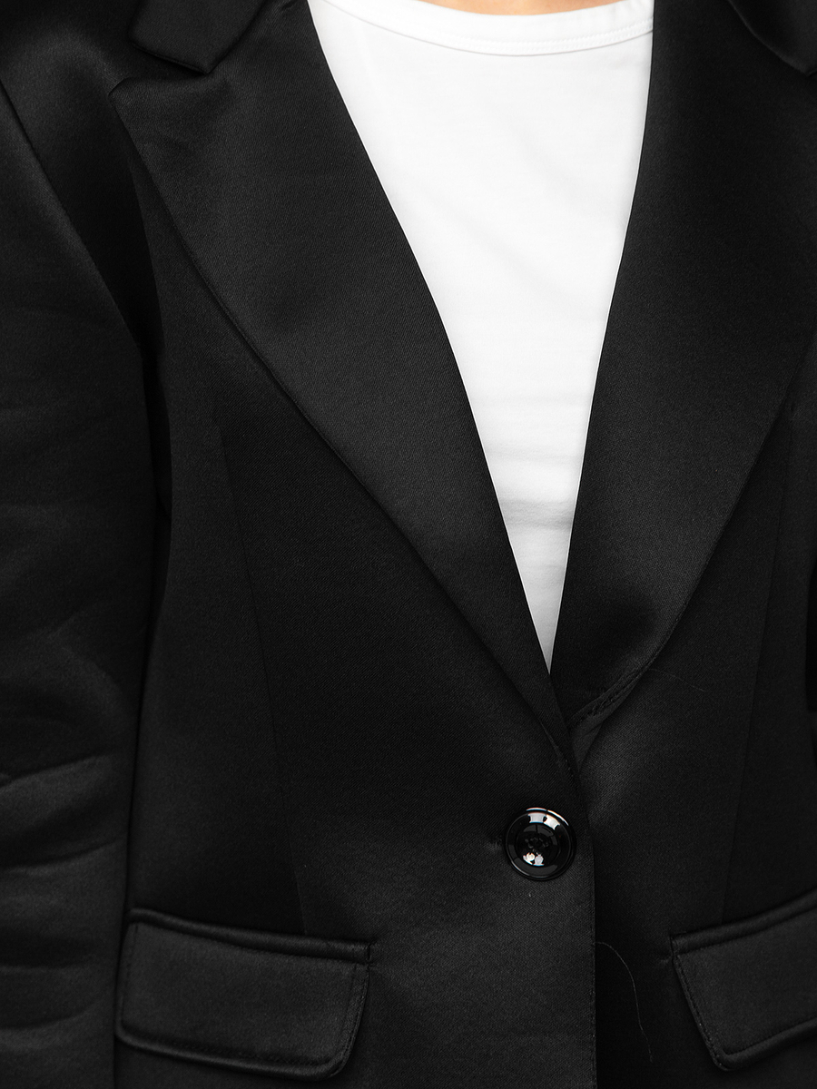 Черното късо палто-сако Bolf 20672 е отличен избор за по-студените дни. Късото палто с копчета ще добави стил към всеки тоалет. Модерен вид му придава имитацията на странични джобове, покрити с капак и яката тип ревери. Това е уникално палто със семпла кройка, с полуелегантен характер. Продуктът е изработен от висококачествена материя, което го прави удобен и еластичен. Вечната кройка означава, че палтото може да ви служи много сезони. Подходяща е както за ежедневно носене, така и за по-официални поводи. Ще изглежда зашеметяващо в комбинация с рокля!