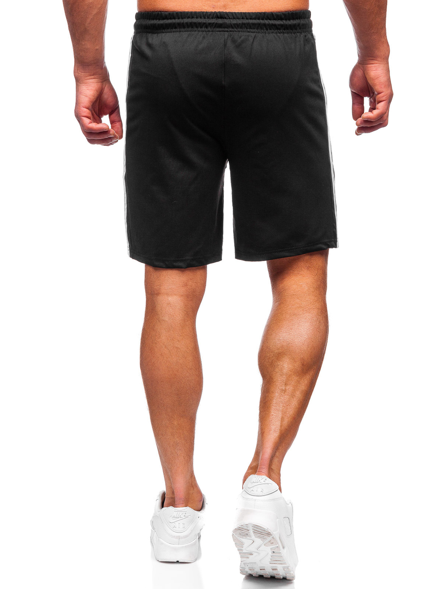 Мъжките черни къси спортни панталони Bolf 68005 са идеалната основа за създаване на летни тоалети . Този модел се предлага в три цветови варианта. Регулируеми в кръста чрез силен широк ластик и връзки, идеално стоят на фигурата. Късите панталони имат два външни джоба с цип , които са практичен елемент за съхранение на най-необходимите неща. Декоративни кантове отстрани. Идеален за разходки из града, срещи с приятели или тренировки. Комбинирайте спортния си тоалет с тениска и суитшърт с цип .