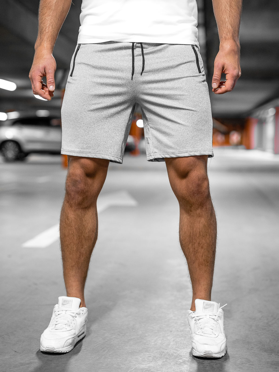 Мъжките сиви спортни къси панталони Bolf 68024 регулируеми в талията със здрава ластик и връзки , идеално стоят на мъжката фигура. Късите панталони имат два външни джоба с цип . Висококачественият материал ще ви накара да се чувствате комфортно във всяка ситуация. Декоративни кантове отстрани. Продукт, създаден за тези, които ценят свободата на движение и комфорта. Идеални за фитнес занимания или тренировки по джогинг. Комбинирайте спортното си облекло с тениска и суичър . Фантастично изглежда сдънково яке, а късите панталони в главната роля.. .