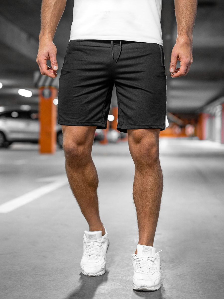 Мъжките черни спортни къси панталони Bolf 68024 регулируеми в талията със здрава ластик и връзки , идеално стоят на мъжката фигура. Късите панталони имат два външни джоба с цип . Висококачественият материал ще ви накара да се чувствате комфортно във всяка ситуация. Декоративни кантове отстрани. Продукт, създаден за тези, които ценят свободата на движение и комфорта. Идеални за фитнес занимания или тренировки по джогинг. Комбинирайте спортното си облекло с тениска и суичър . Фантастично изглежда сдънково яке, а късите панталони в главната роля.. .