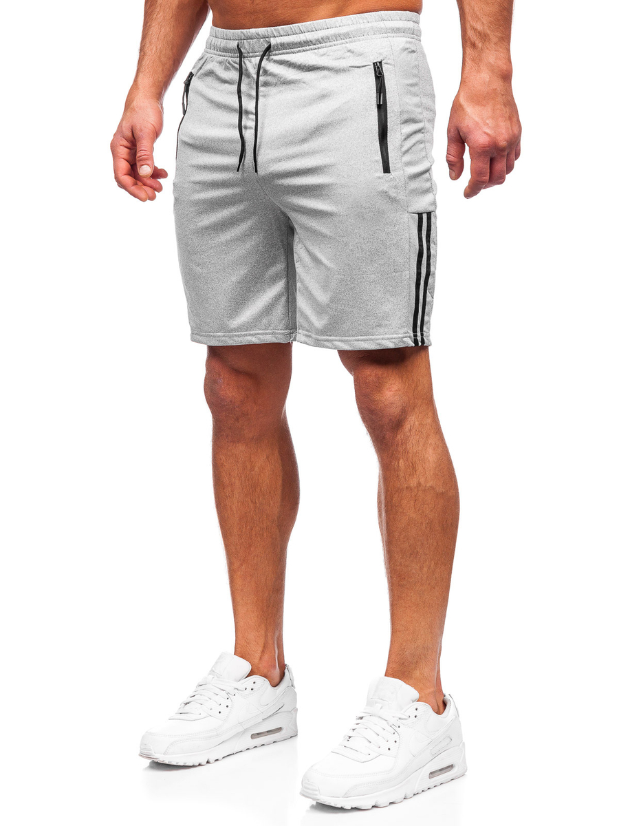 Мъжките сиви спортни къси панталони Bolf 68020 са продукт, който осигурява комфорт независимо от повода. Този модел се предлага в три цветови варианта. Регулируеми в кръста чрез силен широк ластик и връзки, идеално стоят на фигурата. Късите панталони имат два външни джоба с цип . Стилът им ги прави идеални както за ежедневно носене, така и за тежки тренировки. Идеални за разходки из града, срещи с приятели или тренировки. Комбинирайте ги с тениска , за да получите класическо, спортно облекло. Обличат с тях дънково яке , за да получат тоалет за излизане с приятели.