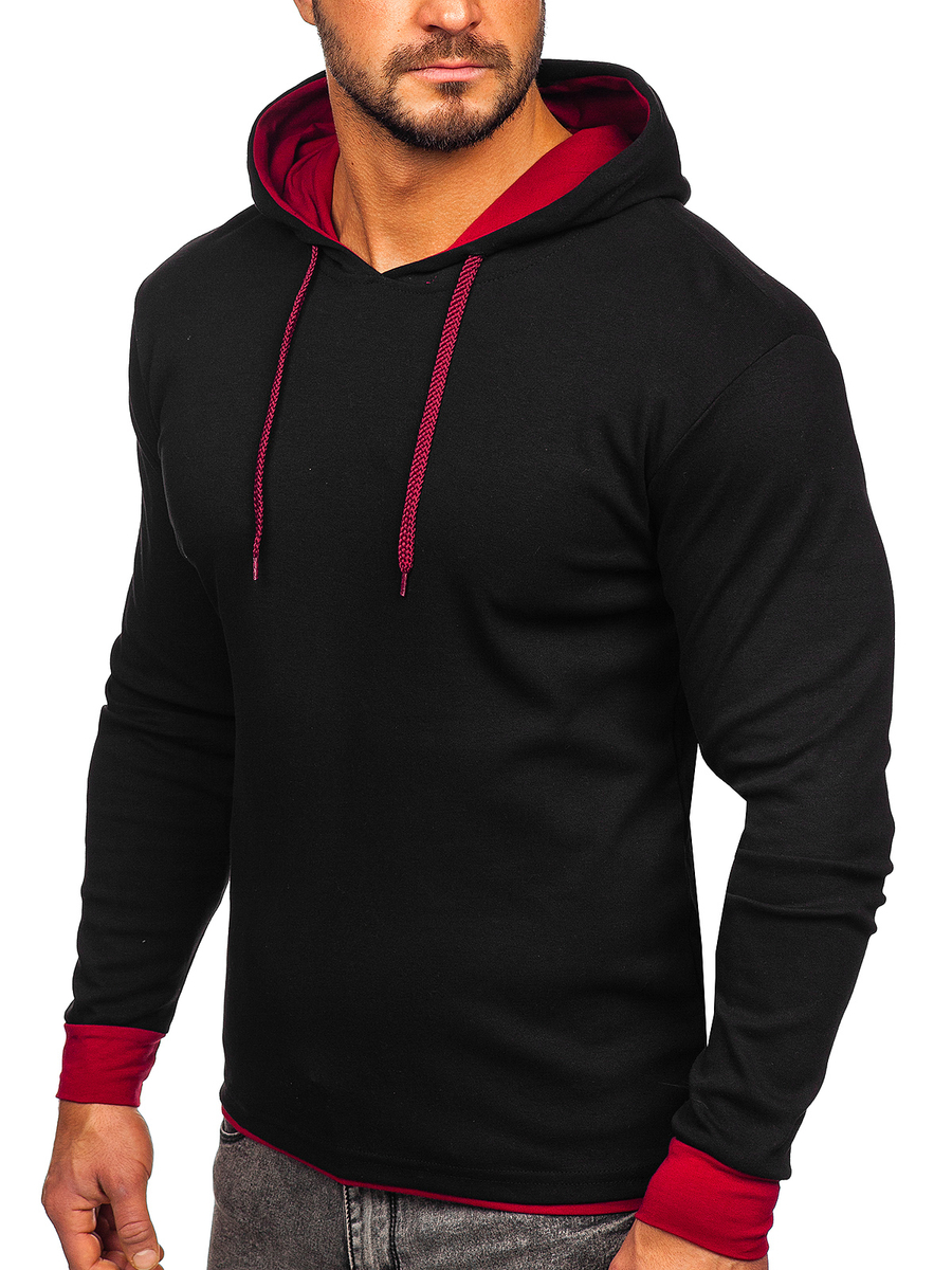 Отзиви и мнения на потребители за Мъжки суитшърт с качулка в черно и бордо Bolf 146312
