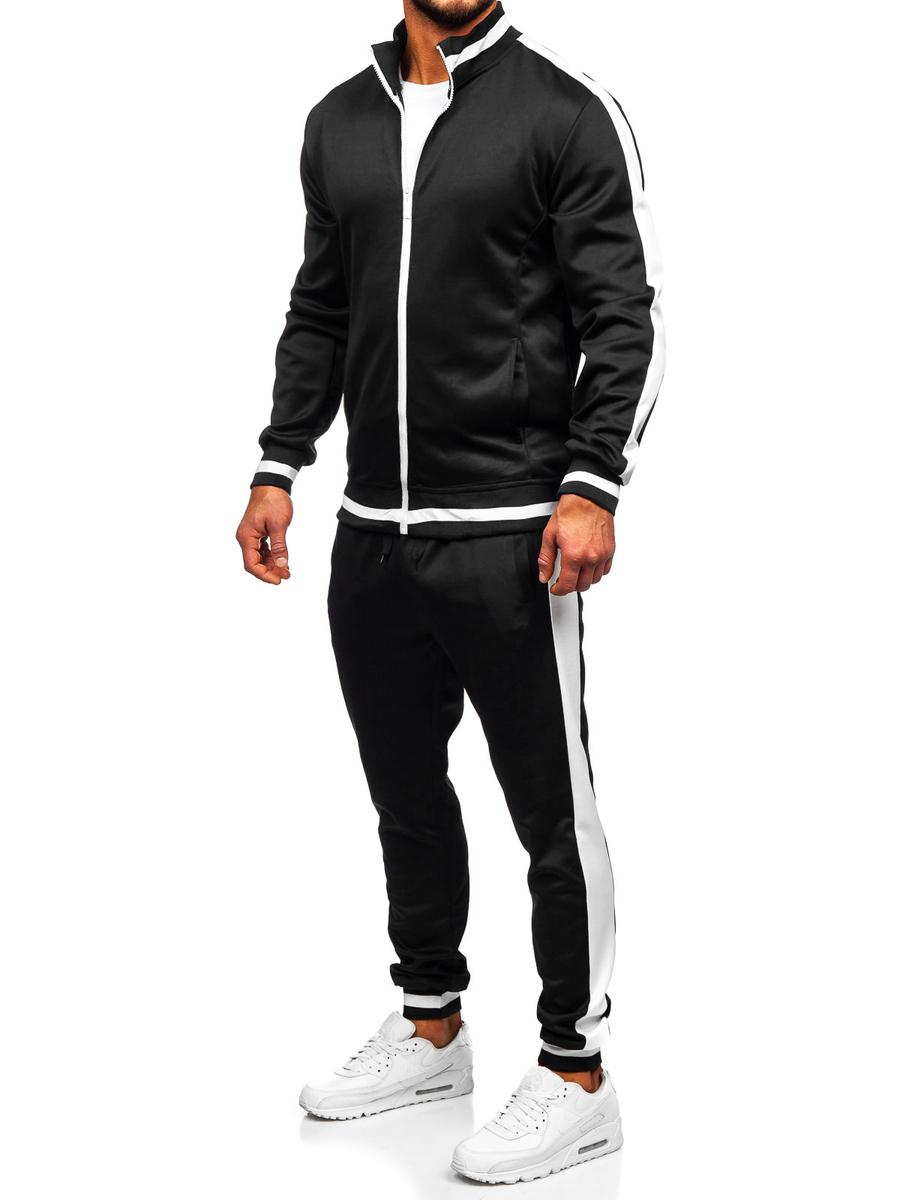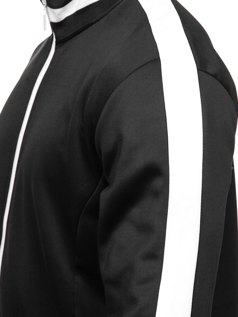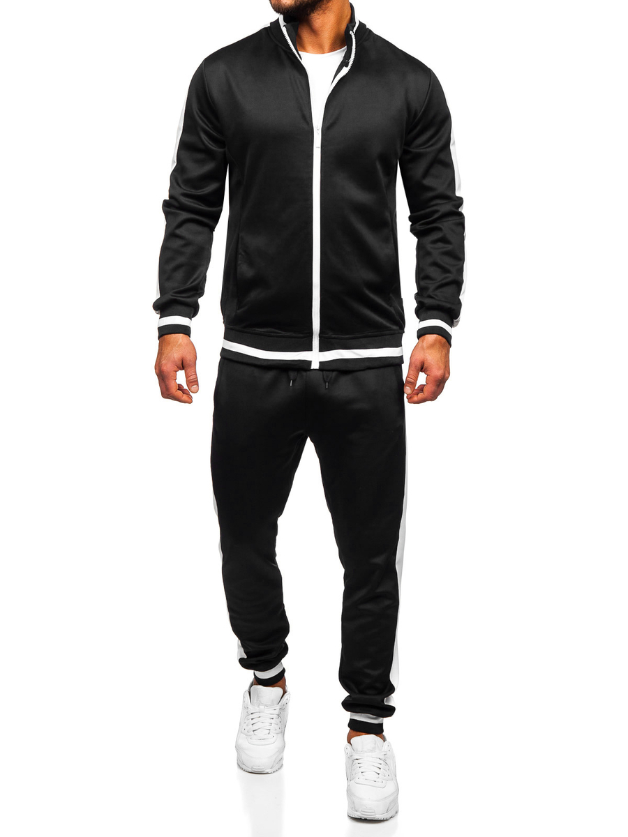 Черният мъжки анцуг Bolf 8C99 е продукт, който осигурява удобство и комфорт, дори и по време на най-взискателните тренировки. Комплектът включва горнище и долнище. Горнището е с висока яка, докато долнището се регулира в талията със здрав ластик и връзки. Спортен характер му придава опростената, вталена кройка. Комплектът има четири практични джоба: два странични без закопчаване и два външни на долнището. Анцугът може да бъде универсална основа за изграждане на ежедневни стилизации. Както горнището, така и долнището могат да се комбинират с други елементи от гардероба ви, създавайки нови аутфити. Чудесно се комбинира с тениска или спортно яке.