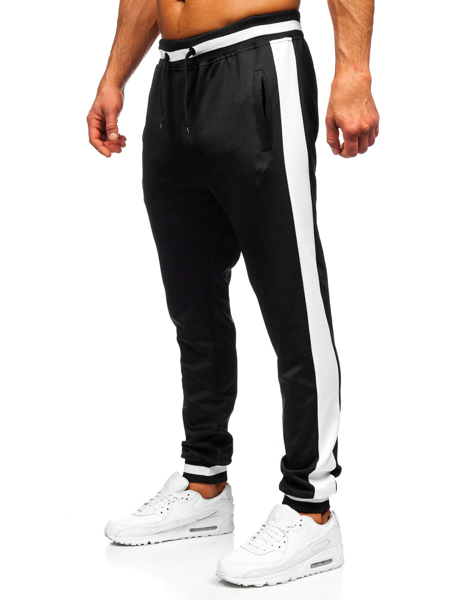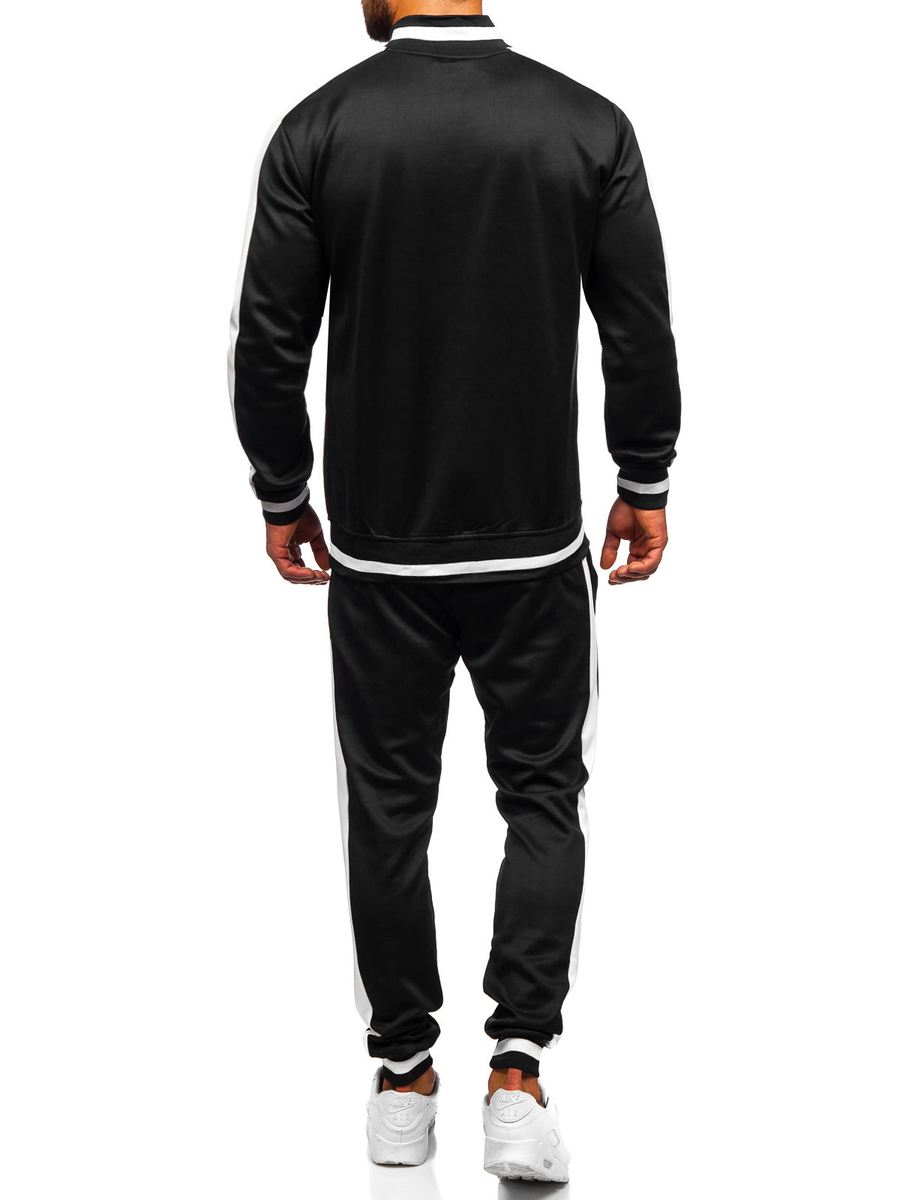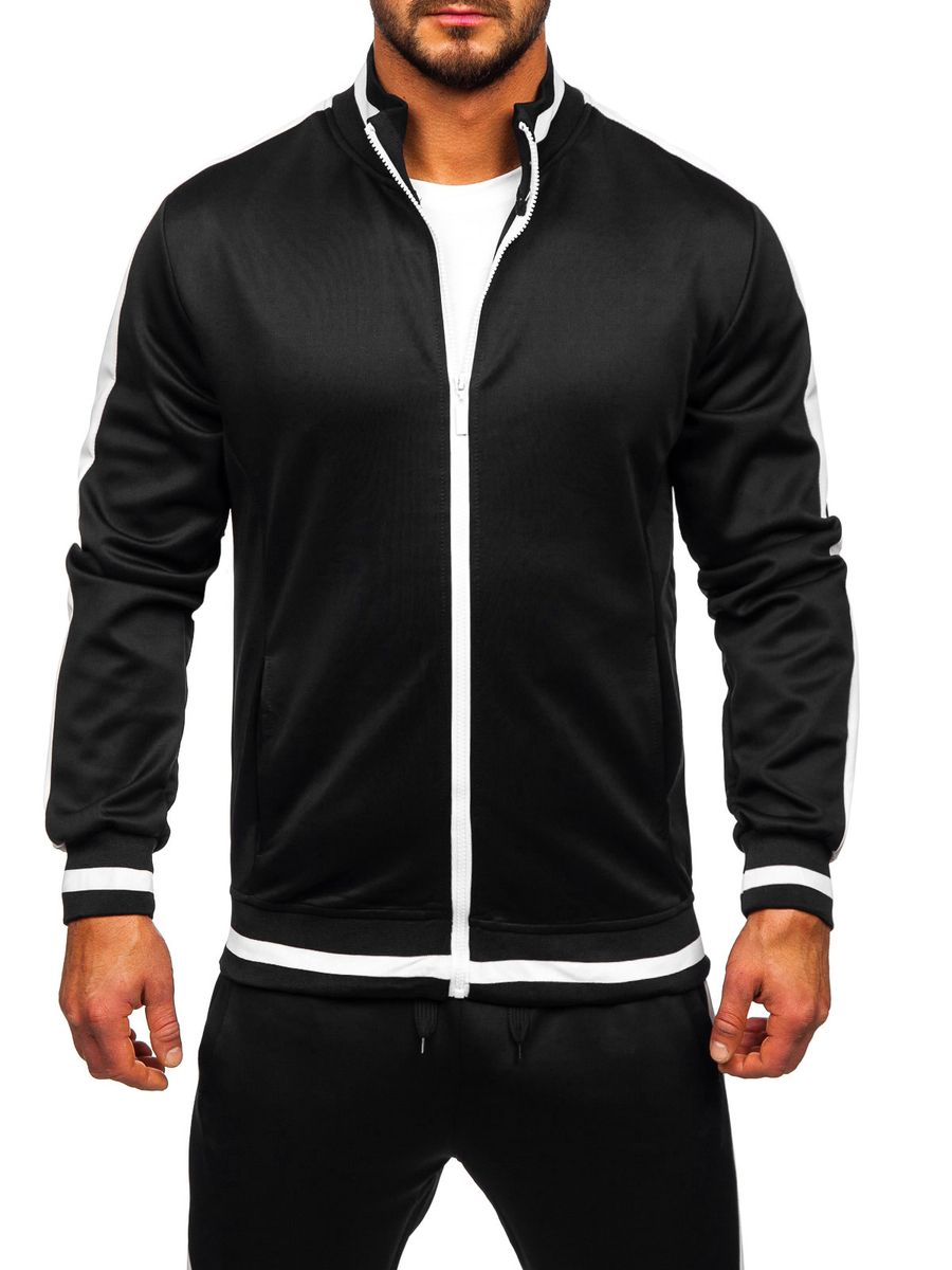 Черният мъжки анцуг Bolf 8C99 е продукт, който осигурява удобство и комфорт, дори и по време на най-взискателните тренировки. Комплектът включва горнище и долнище. Горнището е с висока яка, докато долнището се регулира в талията със здрав ластик и връзки. Спортен характер му придава опростената, вталена кройка. Комплектът има четири практични джоба: два странични без закопчаване и два външни на долнището. Анцугът може да бъде универсална основа за изграждане на ежедневни стилизации. Както горнището, така и долнището могат да се комбинират с други елементи от гардероба ви, създавайки нови аутфити. Чудесно се комбинира с тениска или спортно яке.