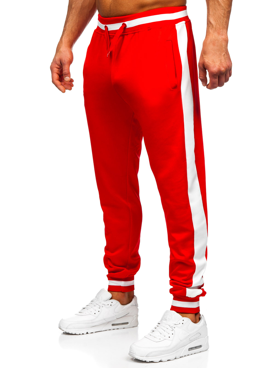 Червеният мъжки анцуг Bolf 8C99 е продукт, който осигурява удобство и комфорт, дори и по време на най-взискателните тренировки. Комплектът включва горнище и долнище. Горнището е с висока яка, докато долнището се регулира в талията със здрав ластик и връзки. Спортен характер му придава опростената, вталена кройка. Комплектът има четири практични джоба: два странични без закопчаване и два външни на долнището. Анцугът може да бъде универсална основа за изграждане на ежедневни стилизации. Както горнището, така и долнището могат да се комбинират с други елементи от гардероба ви, създавайки нови аутфити. Чудесно се комбинира с тениска или спортно яке.