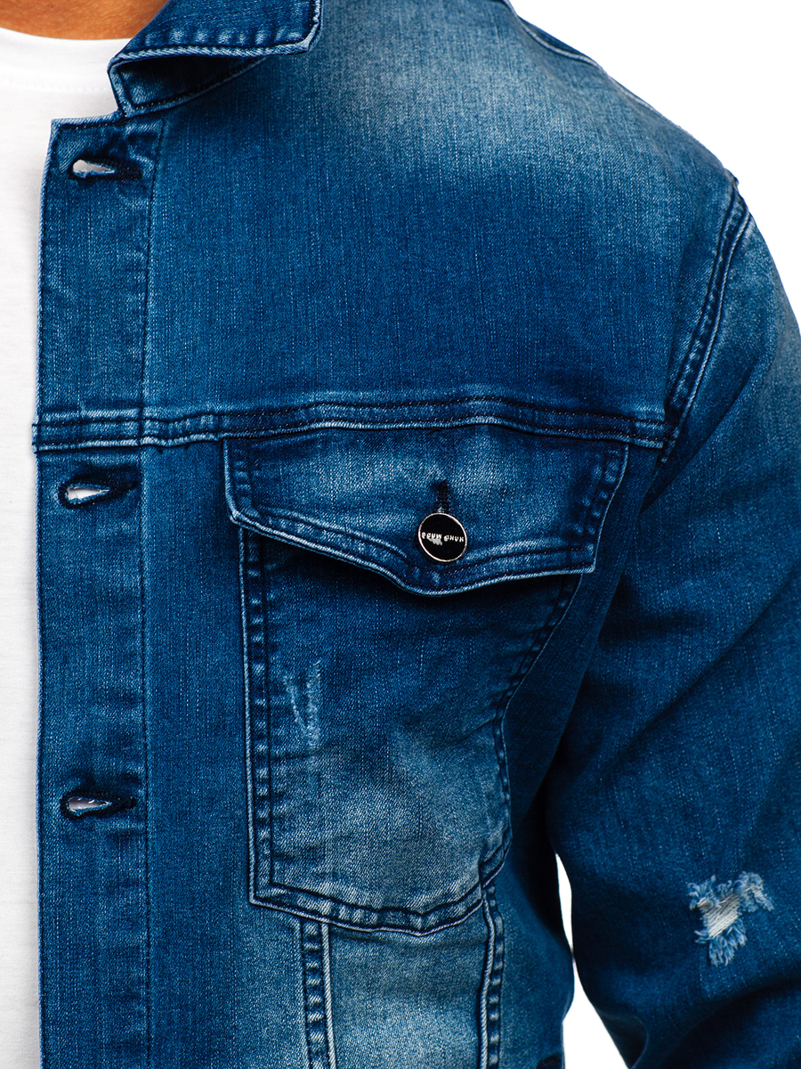 Светлосиньото дънково мъжко яке Bolf MJ506B трябва да бъде във всеки мъжки гардероб. Модните протърквания и регулирането на долния подгъв с копчета му придават уникален характер. Закопчава се с копчета, има висока яка. Допълнителен, практичен акцент са два джоба с копче и два странични джоба без закопчаване. Любимата на нашите клиенти права кройка стои добре на всяка фигура. Закопчаване на ръкавите с копчета Якето е фантастично за дълги вечерни разходки, срещи с приятели или спонтанни пътувания. Чудесно се комбинира със суитшърт или джогъри.