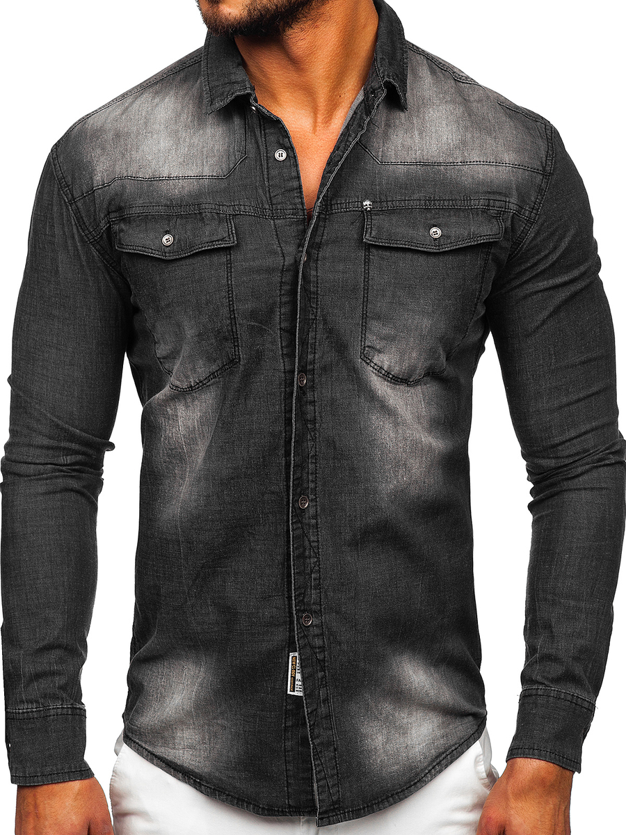 Отзиви и мнения на потребители за Черна мъжка дънкова риза с дълъг ръкав Bolf MC703N