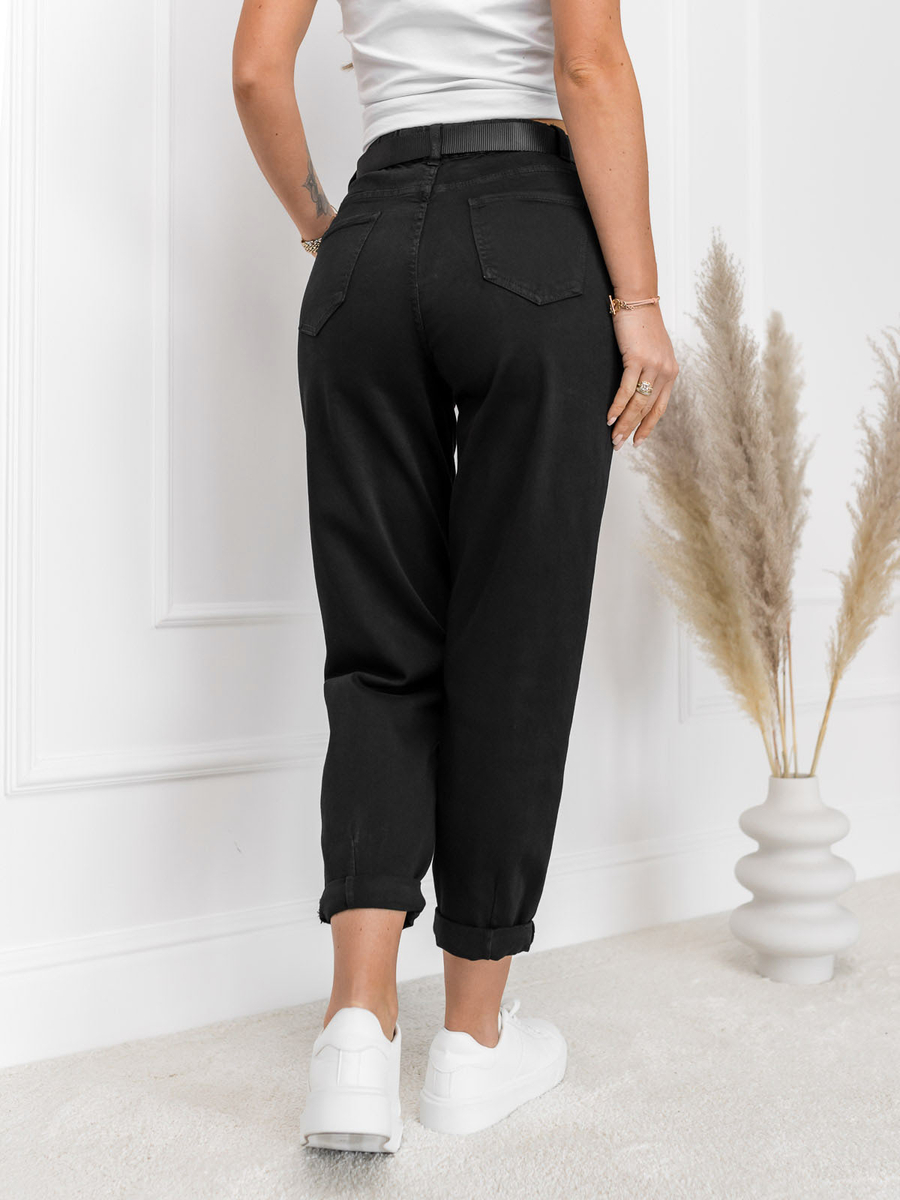 Дамските черни дънкови панталони с висока талия с колан и чантичка Bolf LA688 са модни дънки в стил boyfriend. Панталон от деним с висока талия, с цип и копче. Комплектът включва модерен и практичен колан с чантичка. Два джоба отпред и два отзад и малко джобче отпред. Панталоните от деним са универсална основа за изграждане на ежедневни стилизации. Създайте ежедневен стил, като ги комбинирате със суичър. Съчетайте ги с класически пуловер и палто и ще се насладите на визия, която ще бъде идеална за среща!