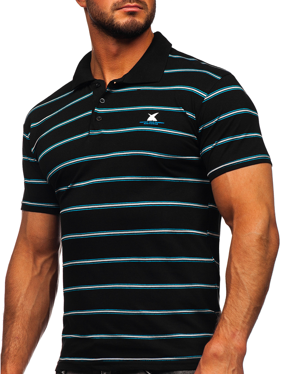 Черната мъжка тениска с щампа с Bolf 14954 се предлага в осем цветови варианта. Благодарение на богатата гама от цветове, винаги можете да съчетаете тениската с всеки стайлинг. Тениската с якичка е щампована изцяло с модерен десен на райета. Тениската с якичка е с права кройка и кръгло деколте, приляга на всяка фигура. Продуктът е изработен от 100% памук, което го прави приятен на допир и изключително удобен, независимо от обстоятелствата. Повод: среща с познати или разходка. Съчетай я с нашите чино панталони. Също така е идеална за по-свободен стайлинг с дънки и кожено яке.