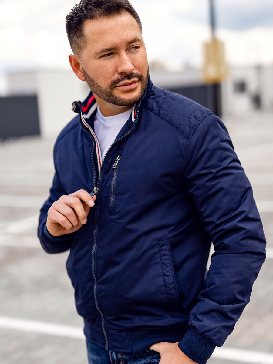 Тъмносини преходни якета от колекцията на Bolf. Къси, модерни, удобни, незаменими в преходния период. Тъмносиньото мъжко яке подчертава много добре мъжката фигура. Пасва идеално на улични стилове. Носи го с джогъри, дънки, модерна тениска.
