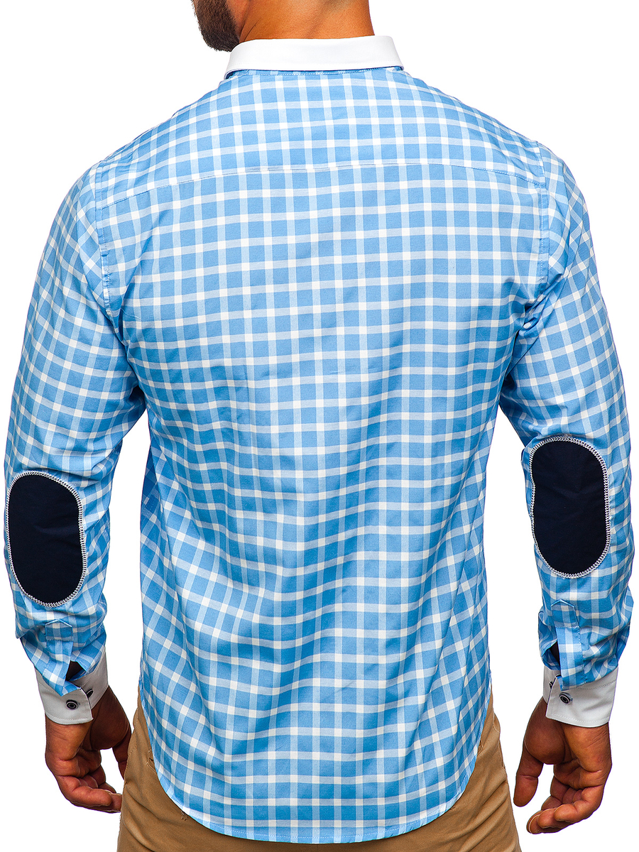 Отзиви и мнения на потребители за Небесносиня мъжка карирана елегантна риза с дълъг ръкав Bolf 5737-1