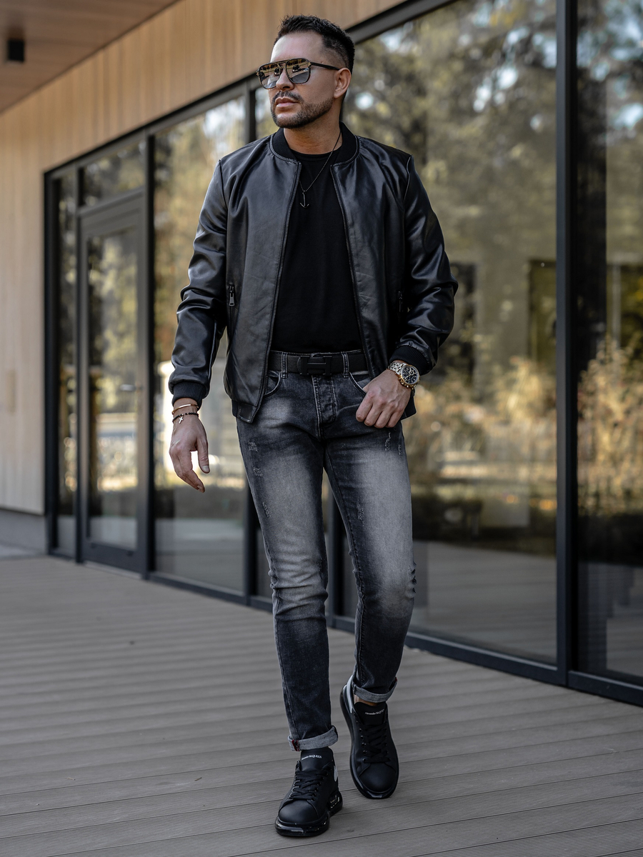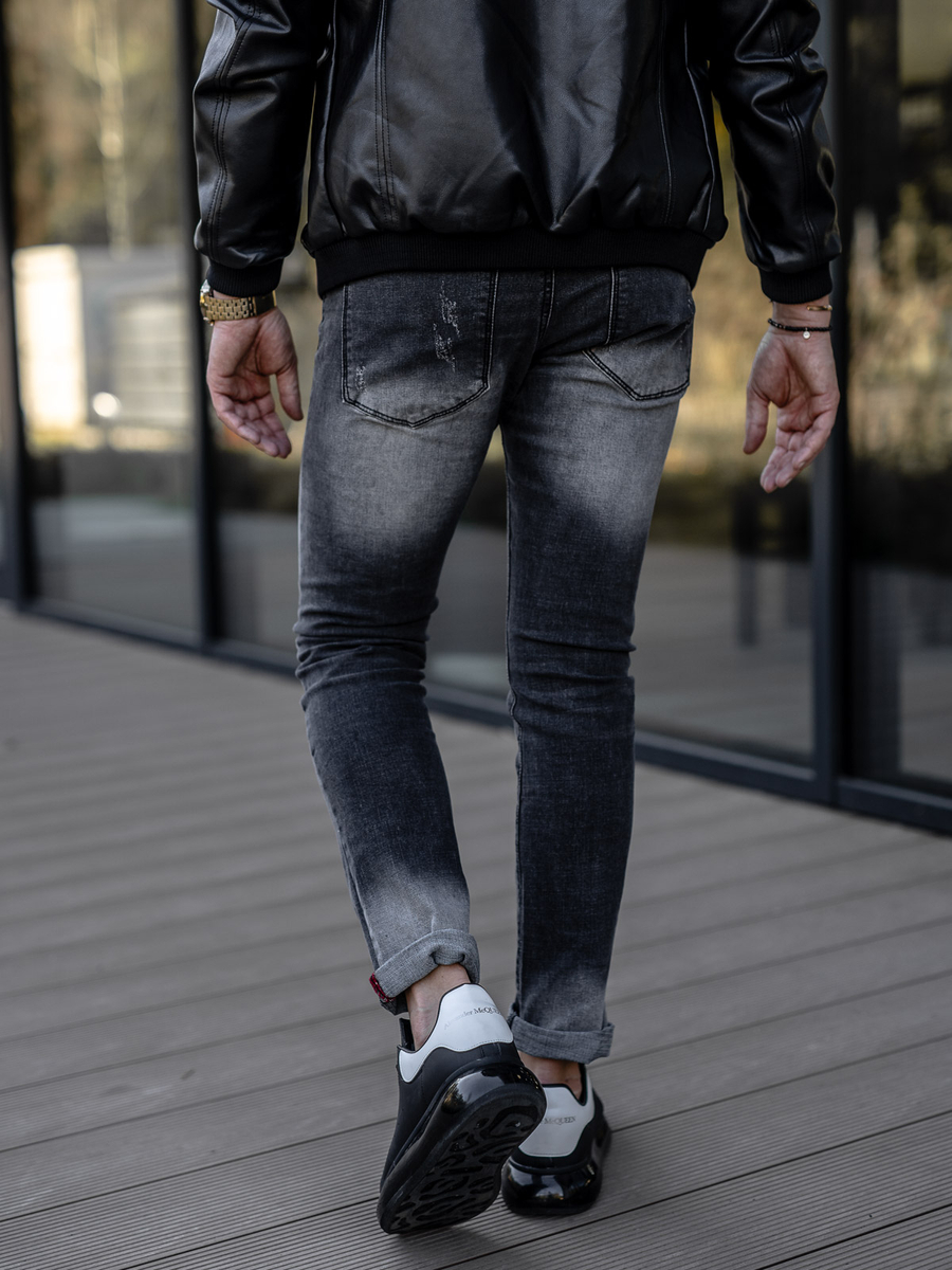 Мъжките черни slim fit дънки Bolf MP0056G стоят перфектно на мъжката фигура. Дънките тип slim fit се закопчават с копчета. Има два практични джоба- два отпред и два отзад. Уникален вид им придават модните протърквания и избелял ефект на крачолите, както и малкото джобче отпред. Панталоните от деним са универсална основа за изграждане на ежедневни стилизации. Можеш да ги облечеш на разходка, пазаруване или излизане с приятели. Ще изглеждаш фантастично, съчетавайки панталона със суичър и кожено яке.