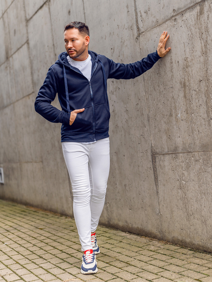 Мастиленосин мъжки суитшърт с качулка и цип Bolf 2008А. Това е класически суитшърт, изработен от мек, приятен на допир трикотаж. Продуктът се характеризира с много ярки цветове, в които се предлага. Има регулируема качулка в плътен цвят и странични джоба. Долният подгъв и ръкавите са завършени с ластичен маншет Суитшърът силно се препоръчва за феновете на минимализма и комфорта в модата. Ефектен и удобен. Те са задължителен елемент във всеки мъжки гардероб. Простият класически стил в интересни цветове прави този модел суитшърти идеален завършек на много ежедневни и street стилизации. Елегантният мъжки суитшърт с цип е предложение, което си струва да имате в гардероба си не в един, а дори в няколко цветови варианта. От класическото черно през сини и зелени нюанси до малко по-екстравагантни оранжеви, жълти или розови разцветки. Практичен суитшърт по всяко време на годината.