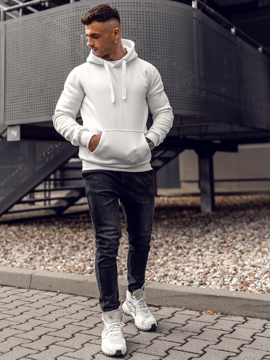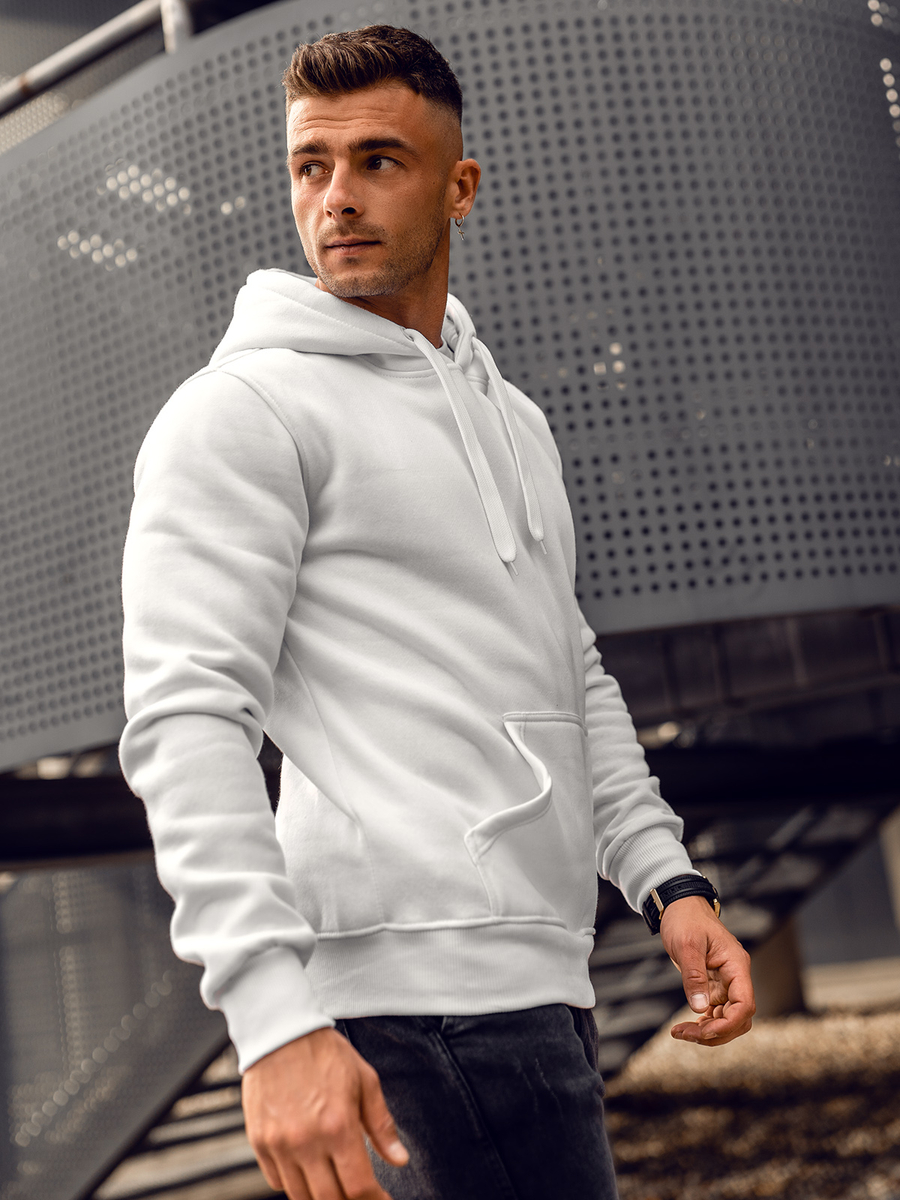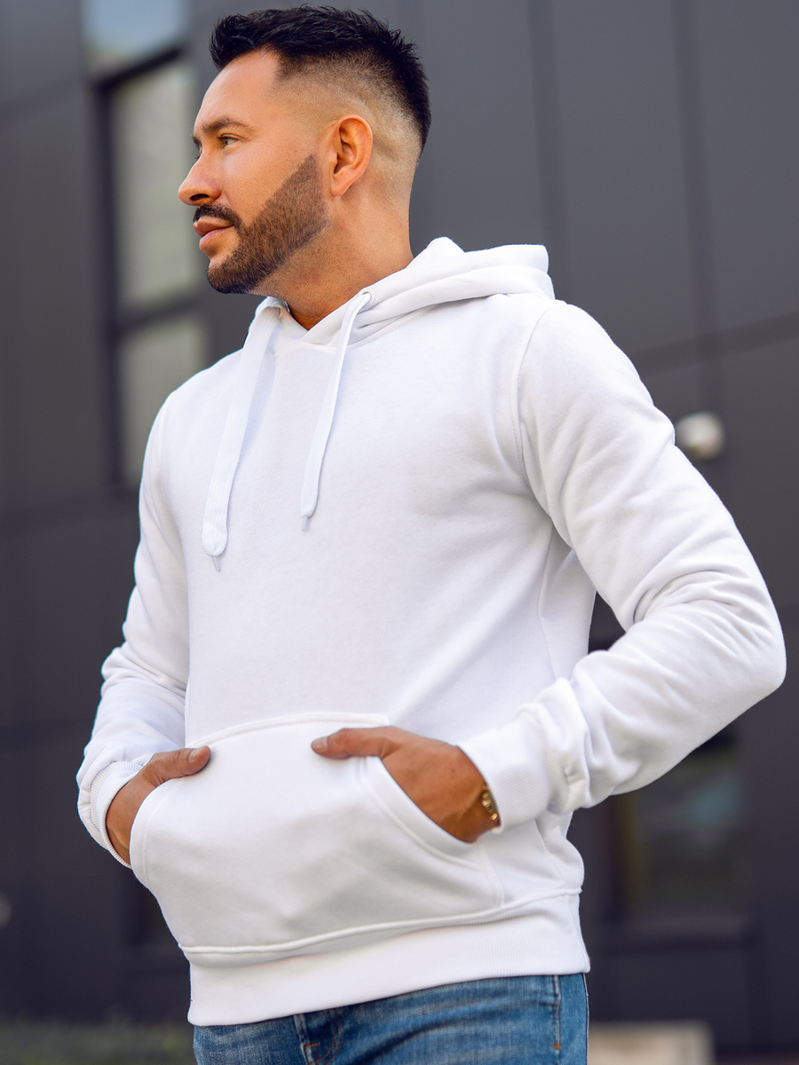 Mъжкият бял суитшърт с качулка Bolf 2009А се облича през главата. Има регулируема качулка и практичен джоб тип кенгуру отпред. Спортен характер му придава правата кройка и завършека с еластичен маншет. В кръста и в краищата на ръкавите има връзки в същия цвят. Изработен е от мека, гладка материя за суичър в еднороден цвят. Този модел се отличава с богати цветове, може да се намери в повече от двадесет цветови варианта, благодарение на което лесно се вписва в много тоалети. Без принт, класически, суитшърти с качулка без цип, подходящ по всяко време на годината и при почти всякакви обстоятелства. Пътуване с приятели в планината или морето? Пазаруване? Среща? Дори за спонтанна среща е подходящ суитшърт от този тип. Суитшърът с качулка е идеален за ежедневно носене, това е задължителен продукт във всеки стилен мъжки гардероб. Модерните цветове ще добавят характер към много ежедневни, улични и спортни стилове. Добре се съчетава с дънки, карго или джогър панталони. Този продукт е подходящ и за типично спортни визии, може да се съчетава със спортно долнище и преходно яке. Той е подходящ за тренировки, както на открито, така и във фитнес залата или спортната зала. Този модел често се избира от купувачите. Той има огромен кръг от фенове сред редовните клиенти на Bolf, както и нашите инфлуенсъри и Instagram звезди. Моделът привлича с отлична изработка и добра конкурентноспособна цена. Този суитшърт има своя аналог в дамска версия и също така бие рекордите по популярност.