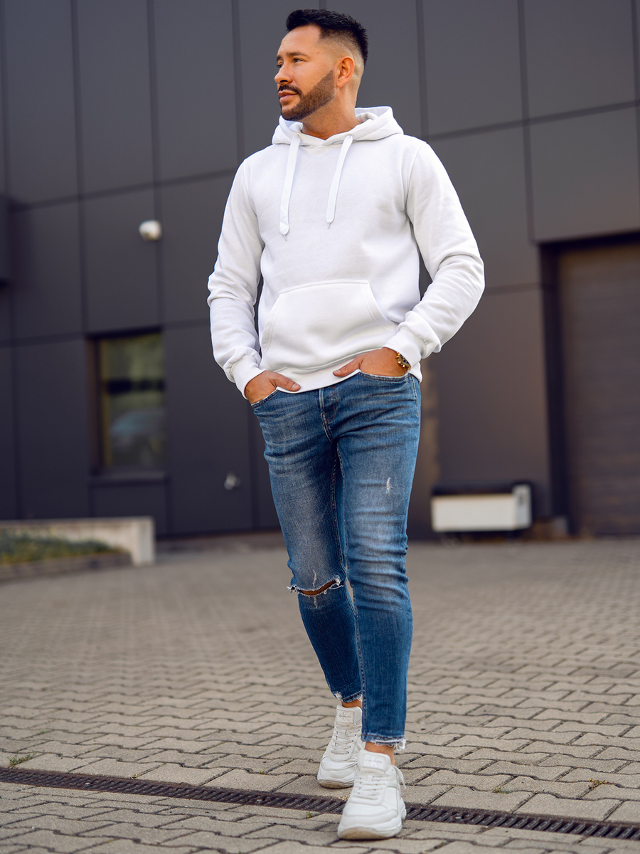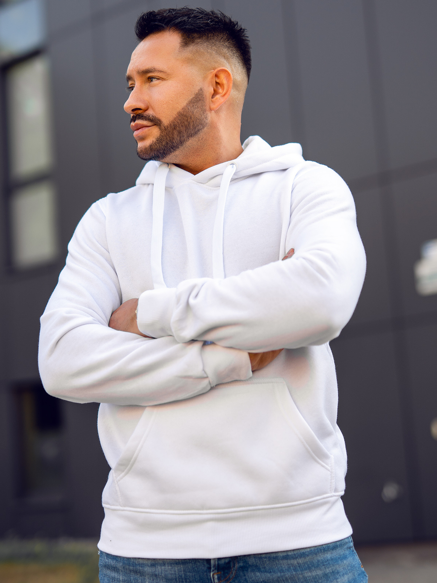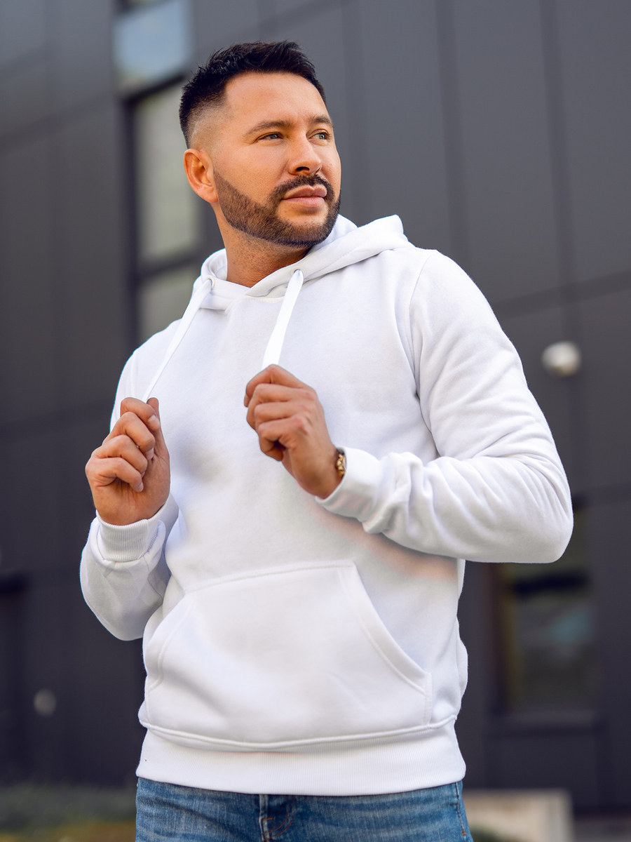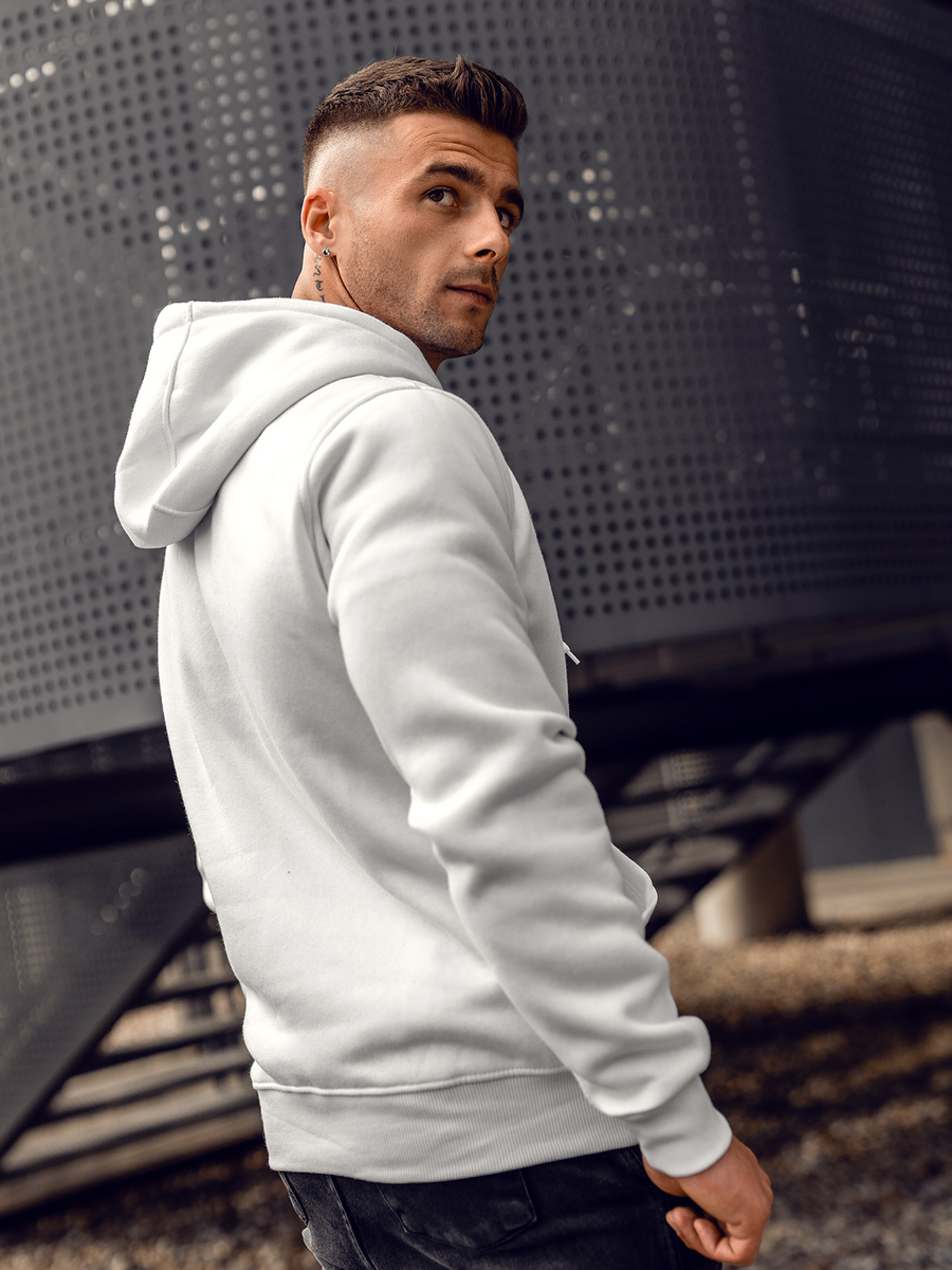 Mъжкият бял суитшърт с качулка Bolf 2009А се облича през главата. Има регулируема качулка и практичен джоб тип кенгуру отпред. Спортен характер му придава правата кройка и завършека с еластичен маншет. В кръста и в краищата на ръкавите има връзки в същия цвят. Изработен е от мека, гладка материя за суичър в еднороден цвят. Този модел се отличава с богати цветове, може да се намери в повече от двадесет цветови варианта, благодарение на което лесно се вписва в много тоалети. Без принт, класически, суитшърти с качулка без цип, подходящ по всяко време на годината и при почти всякакви обстоятелства. Пътуване с приятели в планината или морето? Пазаруване? Среща? Дори за спонтанна среща е подходящ суитшърт от този тип. Суитшърът с качулка е идеален за ежедневно носене, това е задължителен продукт във всеки стилен мъжки гардероб. Модерните цветове ще добавят характер към много ежедневни, улични и спортни стилове. Добре се съчетава с дънки, карго или джогър панталони. Този продукт е подходящ и за типично спортни визии, може да се съчетава със спортно долнище и преходно яке. Той е подходящ за тренировки, както на открито, така и във фитнес залата или спортната зала. Този модел често се избира от купувачите. Той има огромен кръг от фенове сред редовните клиенти на Bolf, както и нашите инфлуенсъри и Instagram звезди. Моделът привлича с отлична изработка и добра конкурентноспособна цена. Този суитшърт има своя аналог в дамска версия и също така бие рекордите по популярност.