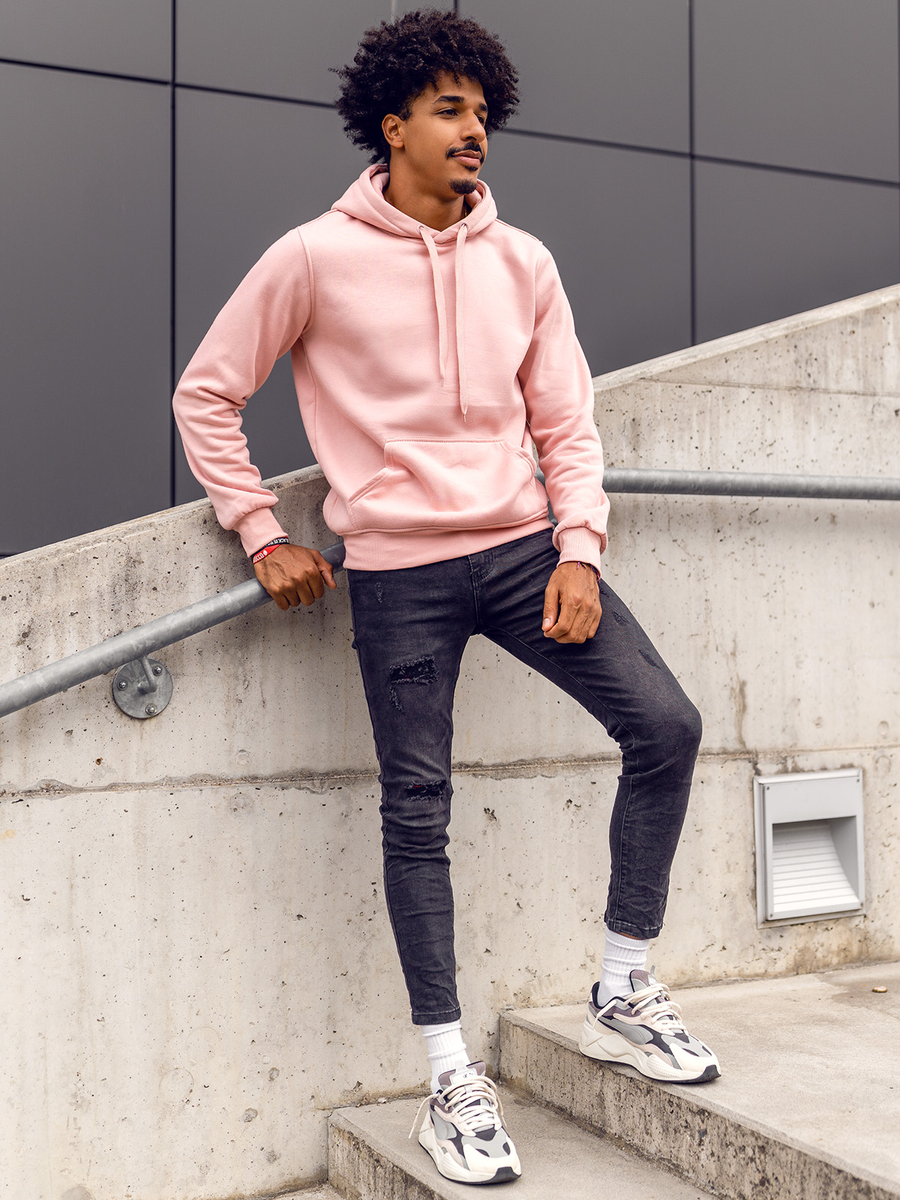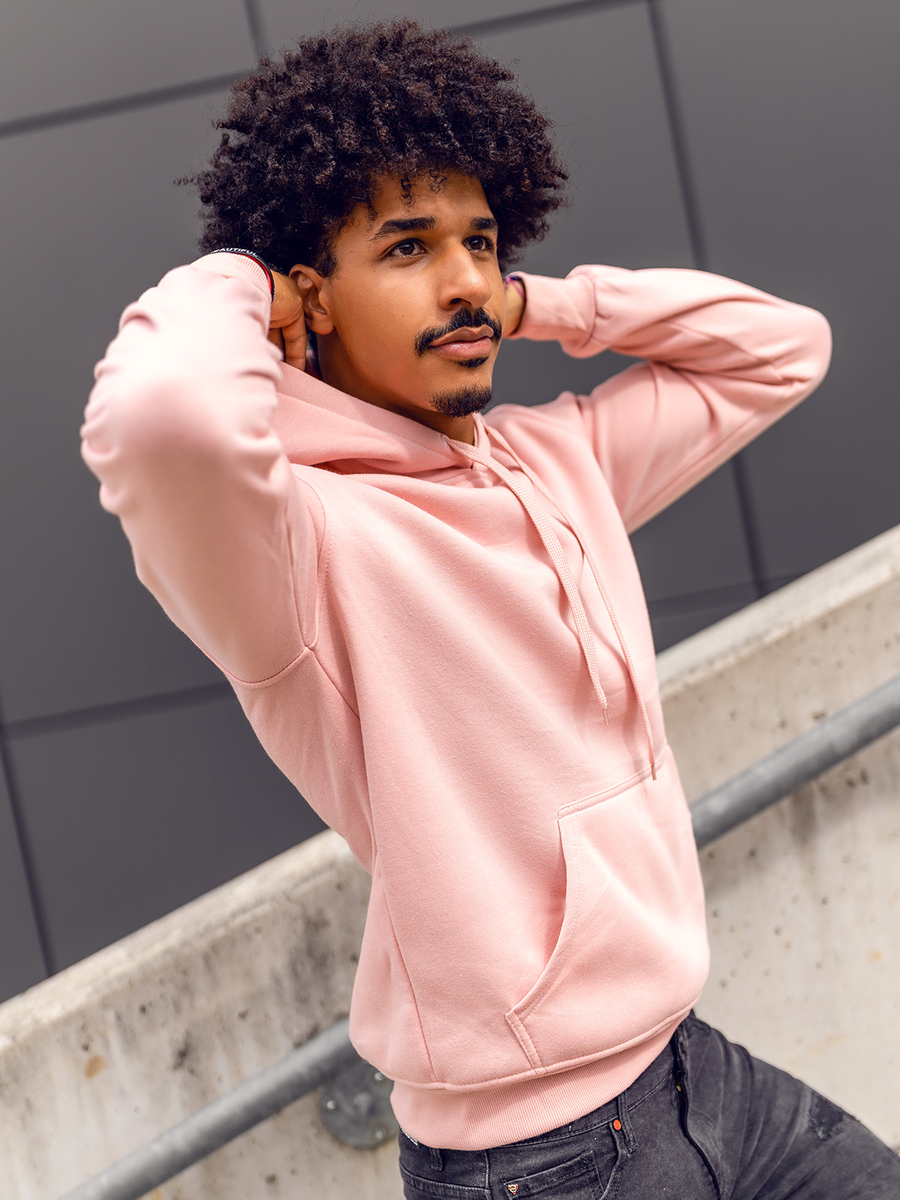Mъжкият светлорозов суитшърт с качулка Bolf 2009А се облича през главата. Има регулируема качулка и практичен джоб тип кенгуру отпред. Спортен характер му придава правата кройка и завършека с еластичен маншет. В кръста и в краищата на ръкавите има връзки в същия цвят. Изработен е от мека, гладка материя за суичър в еднороден цвят. Този модел се отличава с богати цветове, може да се намери в повече от двадесет цветови варианта, благодарение на което лесно се вписва в много тоалети. Без принт, класически, суитшърти с качулка без цип, подходящ по всяко време на годината и при почти всякакви обстоятелства. Пътуване с приятели в планината или морето? Пазаруване? Среща? Дори за спонтанна среща е подходящ суитшърт от този тип. Суитшърът с качулка е идеален за ежедневно носене, това е задължителен продукт във всеки стилен мъжки гардероб. Модерните цветове ще добавят характер към много ежедневни, улични и спортни стилове. Добре се съчетава с дънки, карго или джогър панталони. Този продукт е подходящ и за типично спортни визии, може да се съчетава със спортно долнище и преходно яке. Той е подходящ за тренировки, както на открито, така и във фитнес залата или спортната зала. Този модел често се избира от купувачите. Той има огромен кръг от фенове сред редовните клиенти на Bolf, както и нашите инфлуенсъри и Instagram звезди. Моделът привлича с отлична изработка и добра конкурентноспособна цена. Този суитшърт има своя аналог в дамска версия и също така бие рекордите по популярност.