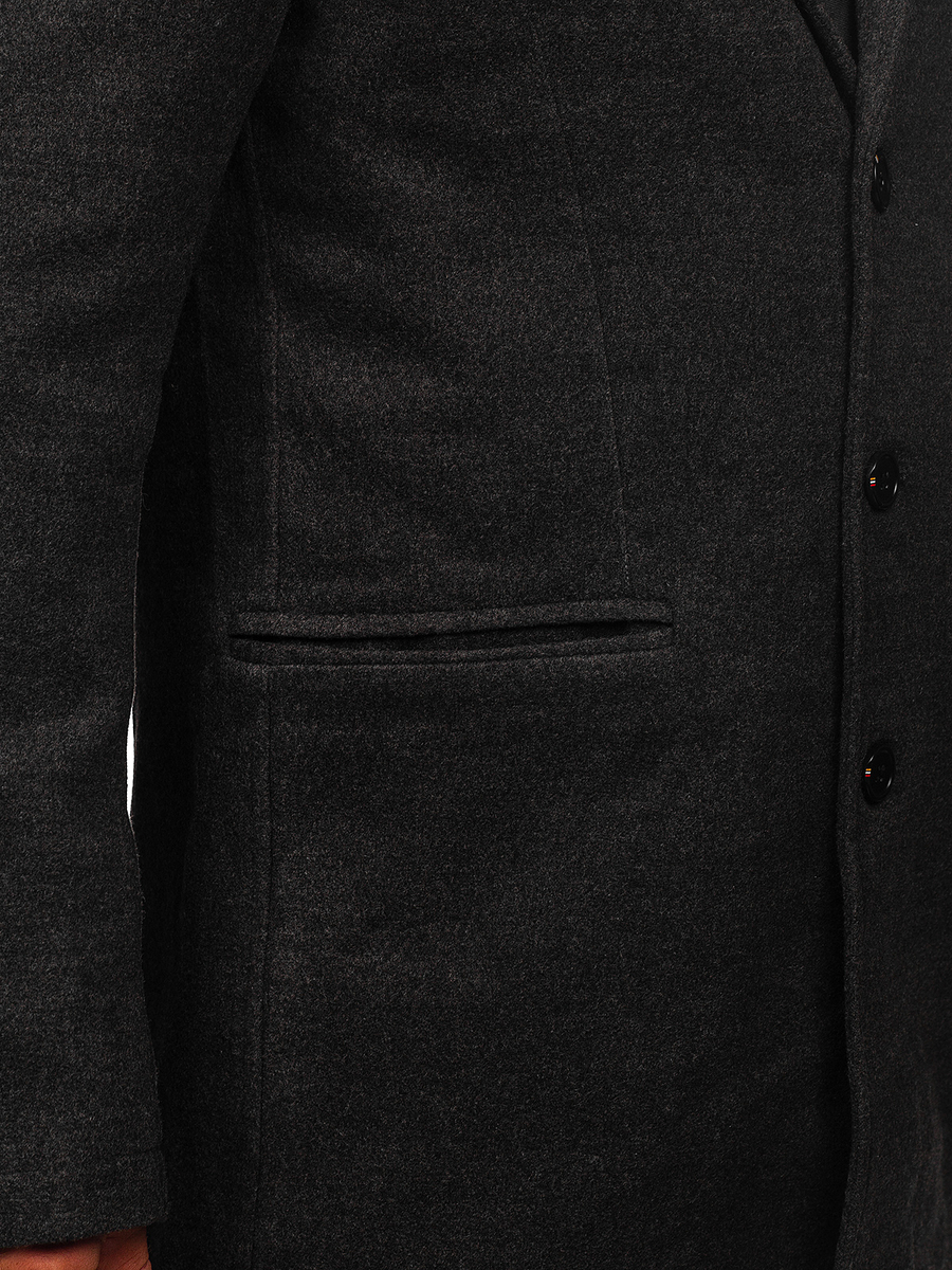 Мъжкото зимно палто в черен цвят Bolf 1047C е сензационно едноредно палто тип Честърфийлд. Идеално за студените зимни дни, тъй като има топъл изкуствен хастар с къс косъм и е изработено от плътна тъкан. Палтото е с копчета, има класическа яка. Палтото има два външни джоба с капачета и два вътрешни. Характер му придават декоративните копчета в краищата на ръкавите и стилния разрез отзад.