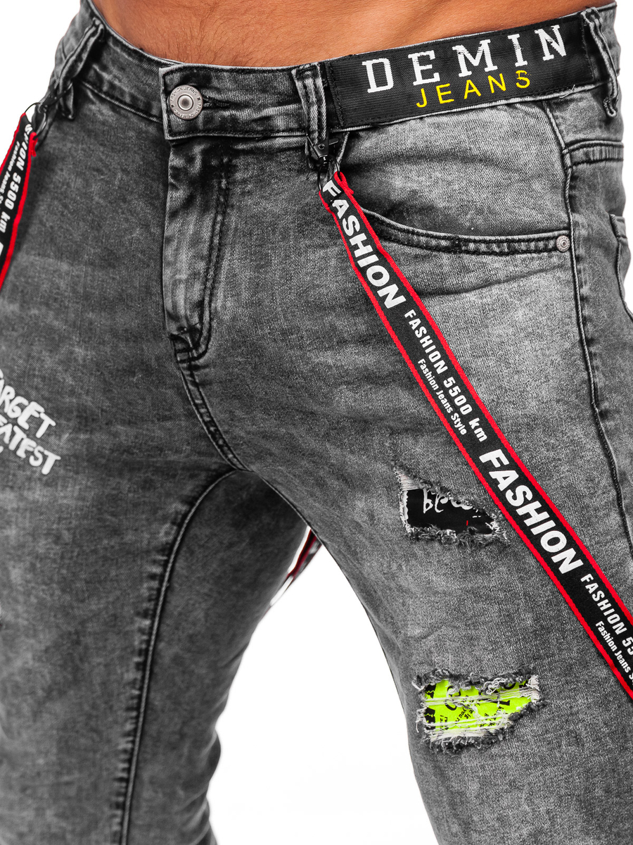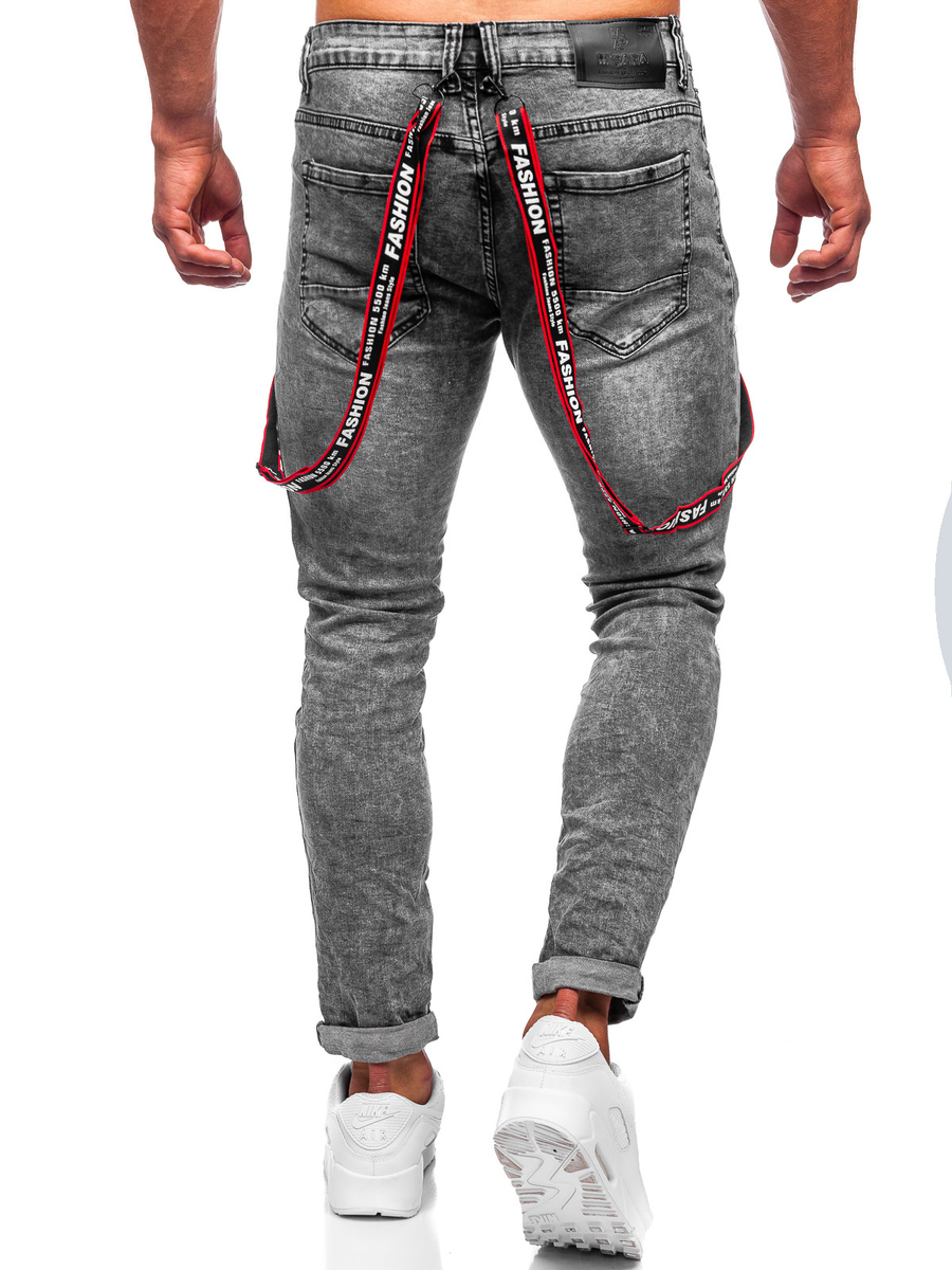 Черни мъжки дънки slim fit с тиранти Bolf KX968-C