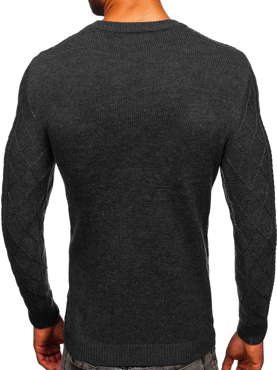 Графитеният мъжки пуловер Bolf MM6010 е с ежедневен характер. Има обло деколте, завършено с щрик. Вталената и семпла кройка кара всеки да изглежда изключително добре с него. Продуктът е изработен от деликатна, приятна на допир материя, която идеално прилепва по тялото. Долната част и ръкавите са завършени с щрикове, благодарение на които пуловерът стои перфектно на всяка фигура. Носете го на работа, в училище или на среща с приятели – какъвто и да е поводът, винаги ще изглеждате страхотно. Класическият пуловер чудесно се съчетава с дънки и кожено яке, създавайки идеалният тоалет за излизане в града.