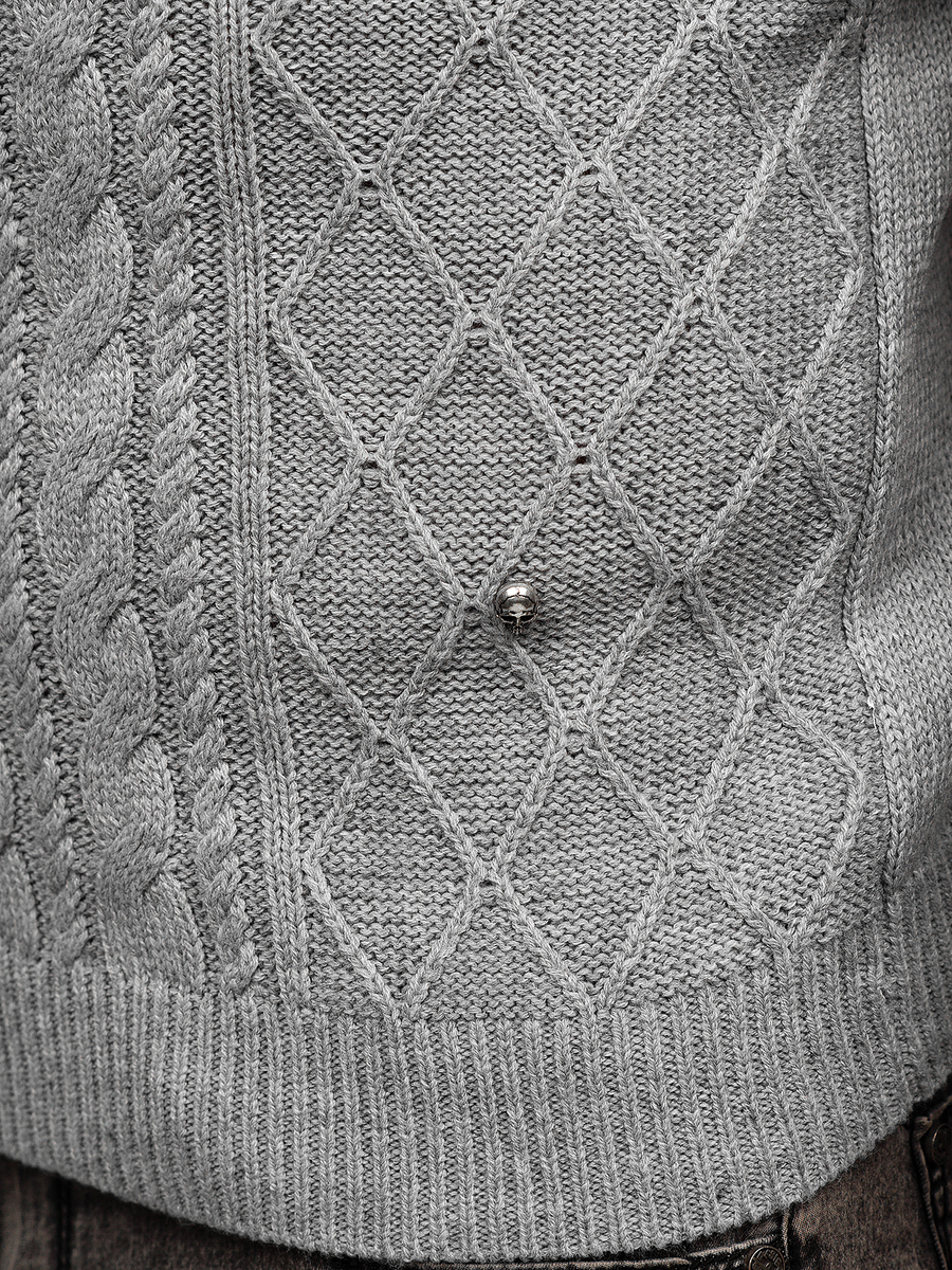 Сивият мъжки пуловер Bolf MM6010 е с ежедневен характер. Има обло деколте, завършено с щрик. Вталената и семпла кройка кара всеки да изглежда изключително добре с него. Продуктът е изработен от деликатна, приятна на допир материя, която идеално прилепва по тялото. Долната част и ръкавите са завършени с щрикове, благодарение на които пуловерът стои перфектно на всяка фигура. Носете го на работа, в училище или на среща с приятели – какъвто и да е поводът, винаги ще изглеждате страхотно. Класическият пуловер чудесно се съчетава с дънки и кожено яке, създавайки идеалният тоалет за излизане в града.