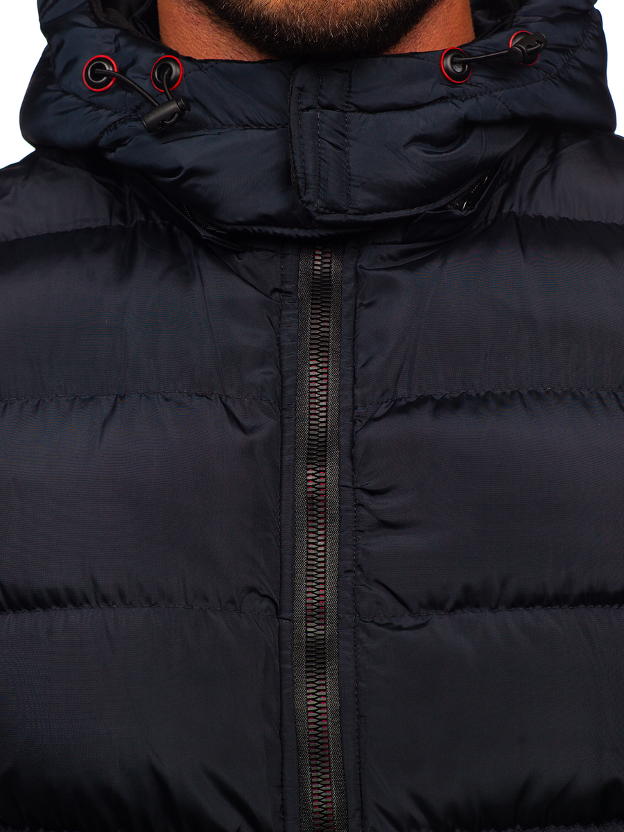 Отзиви и мнения на потребители за Тъмносин плътен капитониран мъжки елек с качулка Bolf 7129