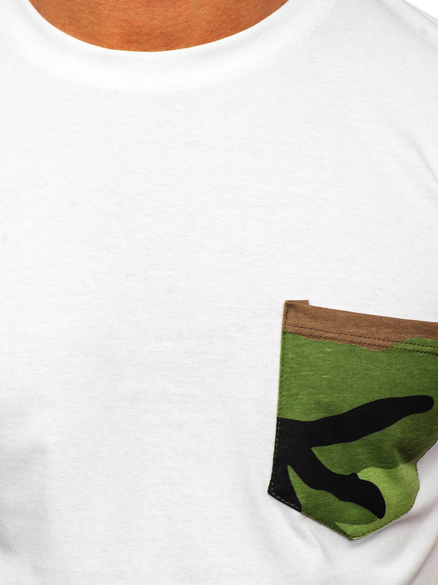 Бяла мъжка памучна тениска с джобче Bolf 14507