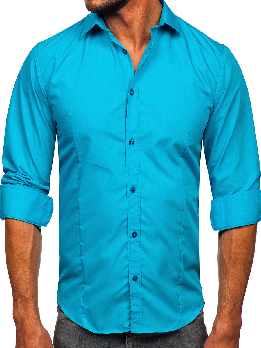 Светъл тюркоазена елегантна мъжка риза с дълъг ръкав Bolf 1703