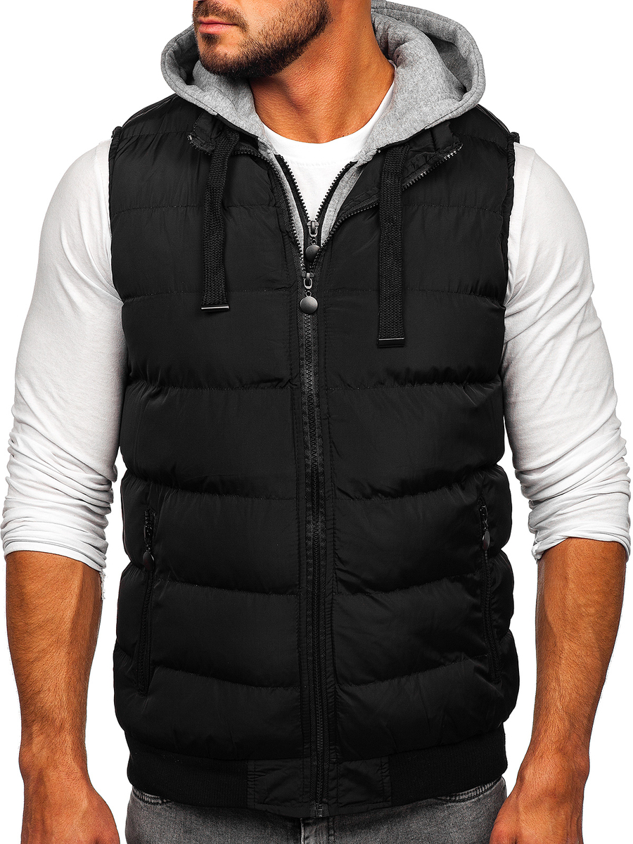 Отзиви и мнения на потребители за Черен мъжки капитониран елек с качулка Bolf 5M751