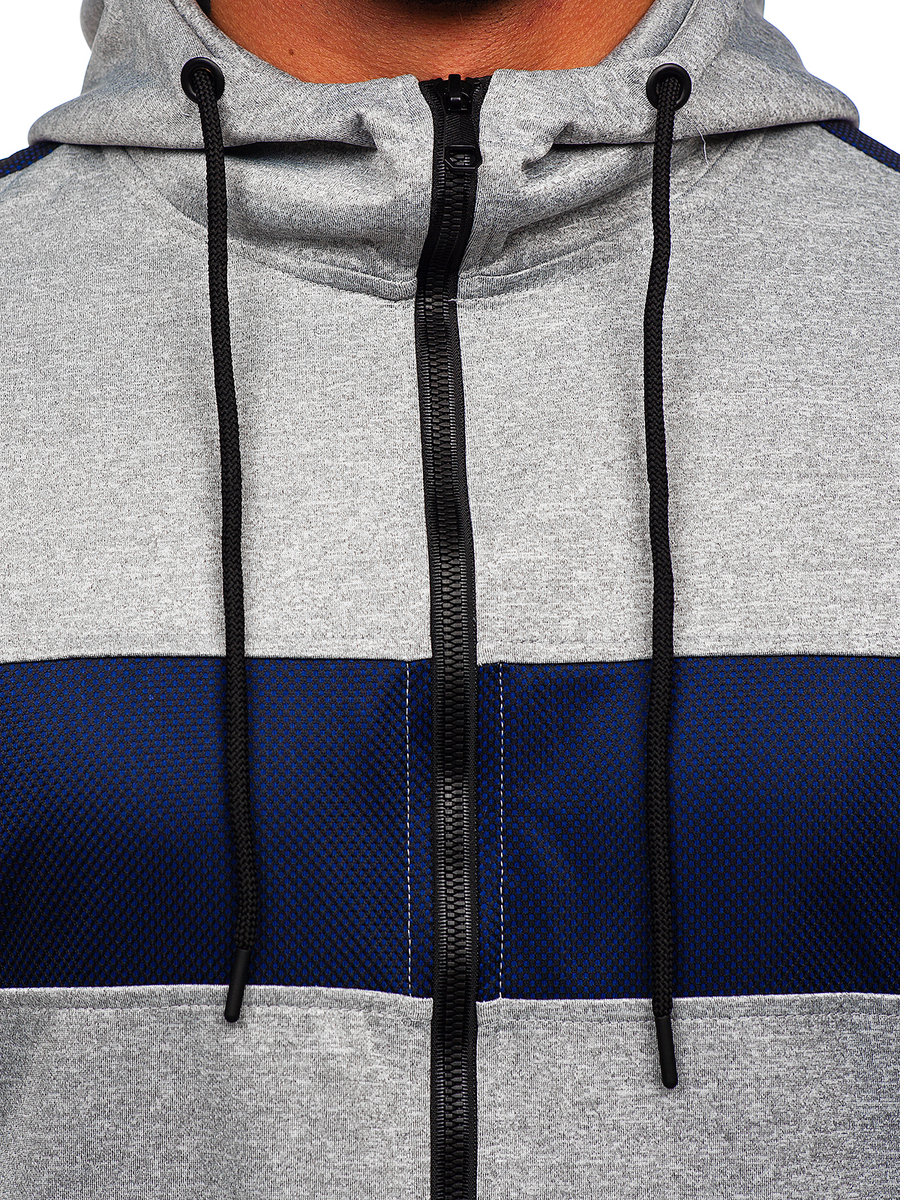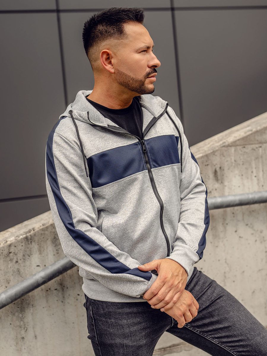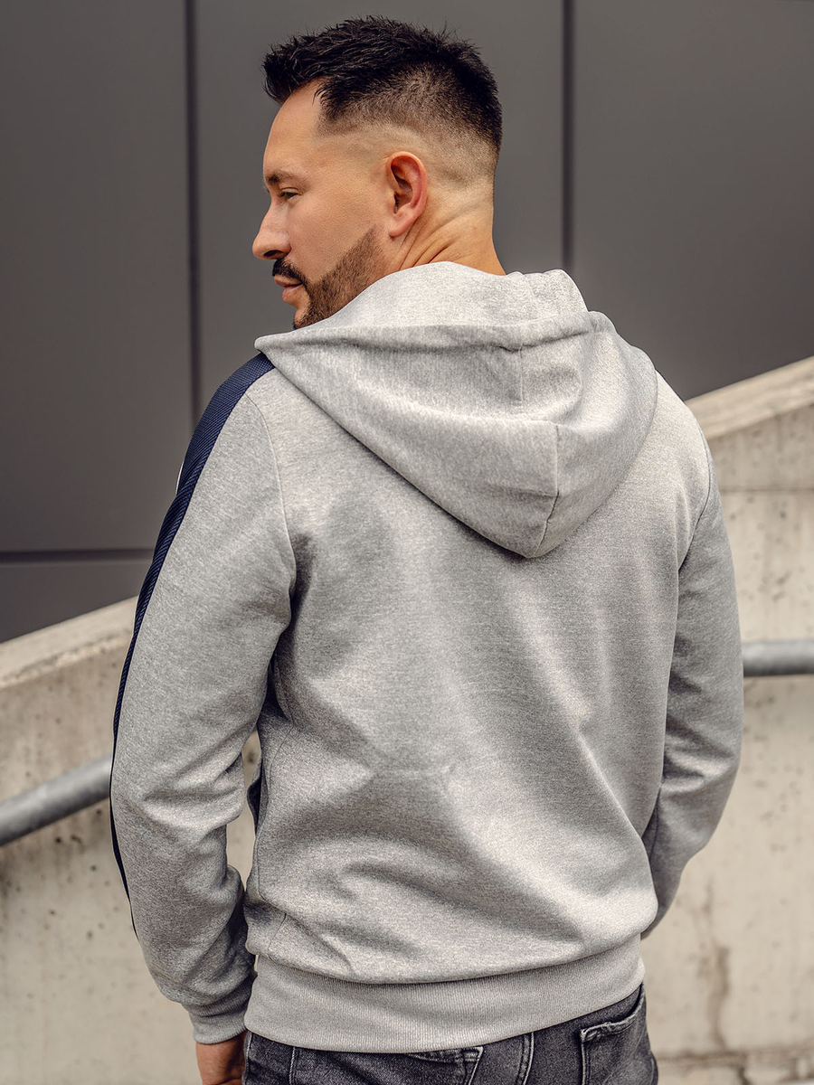 Сив мъжки суитшърт с цип и качулка Bolf 27B8121