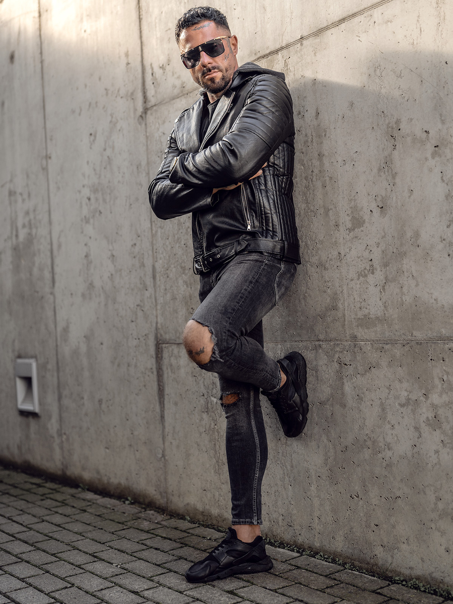 Мъжкото черно кожено яке Bolf 11Z8005 е перфектна класика с модерен привкус. Изработено е от еко кожа, закопчава се с цип. Коженото яке има модна комбинация от материи, която го отличава от другите предложения! Долният подгъв има декоративно закопчаване. Якето има сваляща се качулка, имитираща суичър. Якето е с два практични външни джоба с цип, джоб на гърдите и един вътрешен джоб. Небрежният стил на якето ви позволява да създадете много интересни стилизации с него. Залагаш на класиката? Комбинирай якето с дънки и t-shirt!