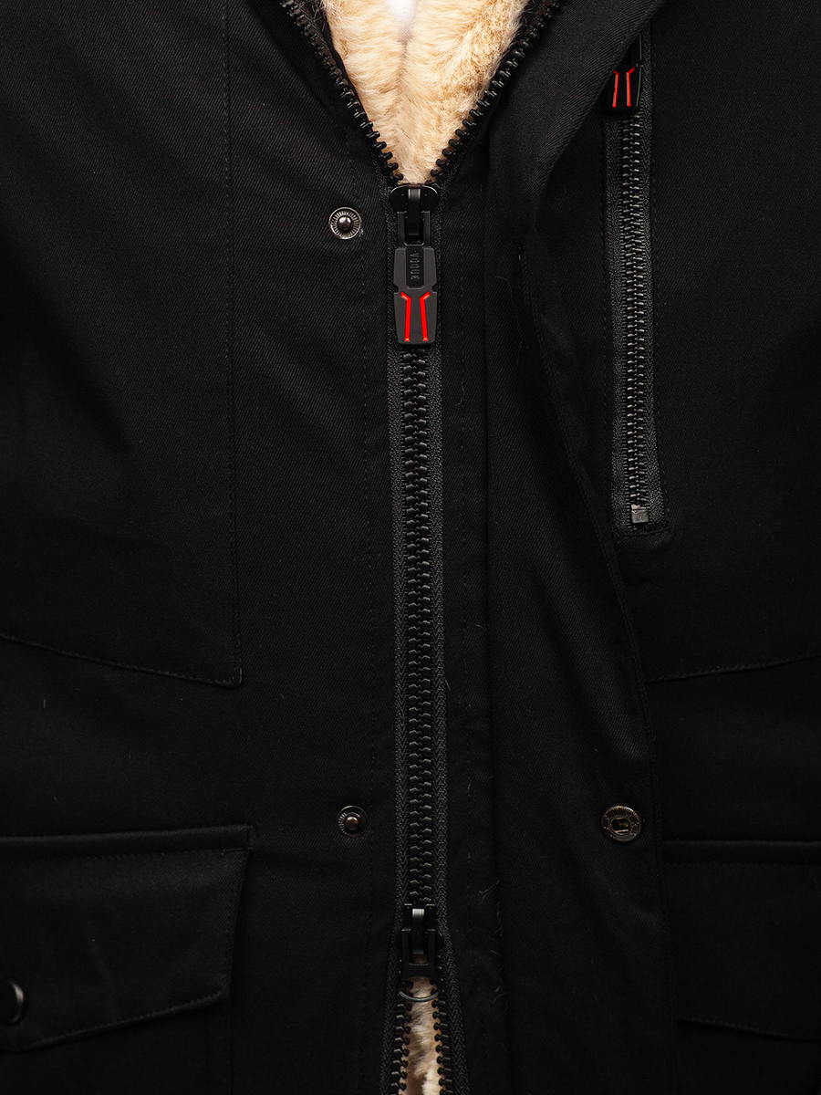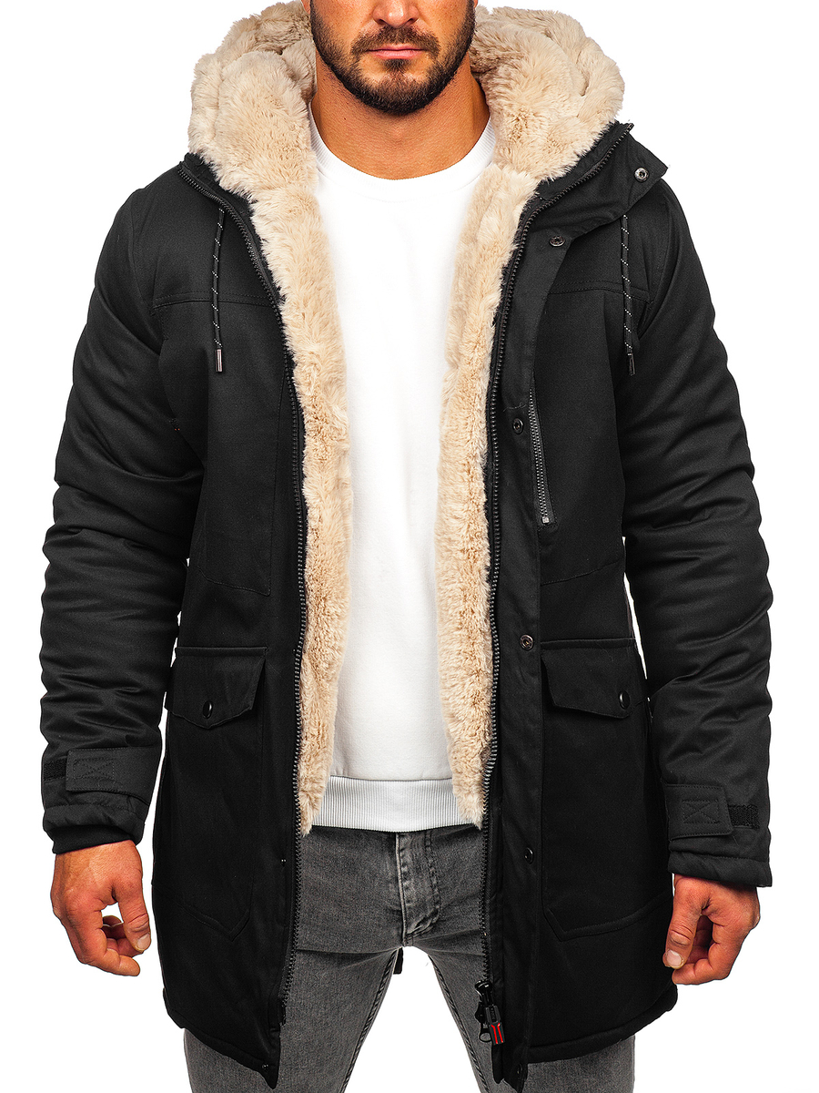 Мъжкото черно зимно яке тип парка Bolf 22M37 е идеален избор за зимните дни. Топло, зимно яке с регулируема качулка, предлага се в два цвята. Има топла, пухкава подплата. Закопчаване с цип и тик-так копчета. Има два джоба на гърдите и два странични с тик-так копчета, в които можеш безопасно да съхраняваш телефона, портфейла или ръкавиците си. Допълнително има две вътрешни джобчета, едното от които е с цип. Якето е идеално за ежедневни аутфити. Искаш ли да се открояваш? Добави към якето дънки и суитшърт с дизайнерски принт!