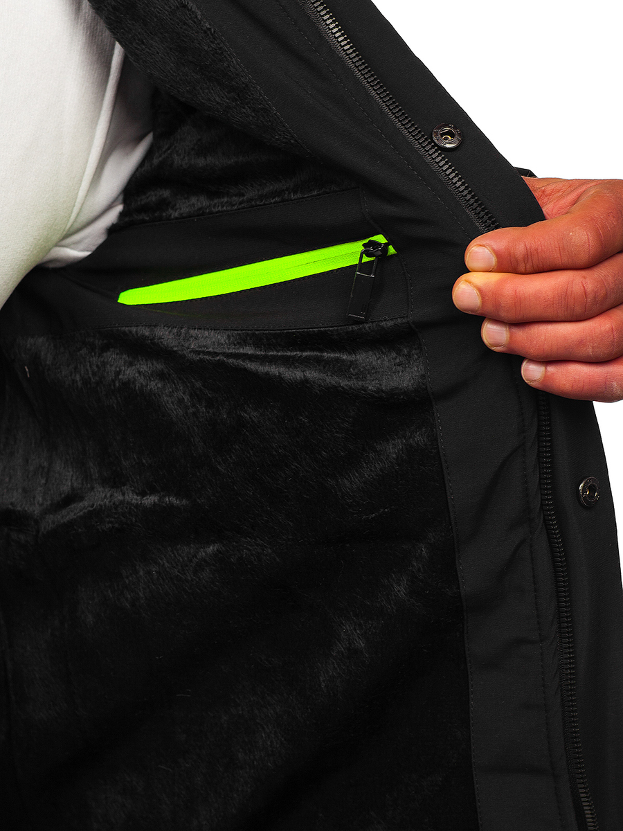 Мъжкото черно ватирано зимно яке Bolf 22M60 е идеален избор за зимните дни. Топло, зимно яке с oтделяща се, регулируема качулка и закопчаване с тик-так копчета. Декоративните апликации на ръкавите му добавят отличаващ се характер. Якето се закопчава с цип и тик-так копчета. Има джоб с цип на гърдите и два странични с тик-так копчета, в които можеш безопасно да съхраняваш телефона, портфейла или ръкавиците си. Допълнително има малък вътрешен джоб с цип. Якето е идеално за ежедневни аутфити. Искаш ли да се открояваш? Добави към якето дънки и суитшърт с дизайнерски принт!