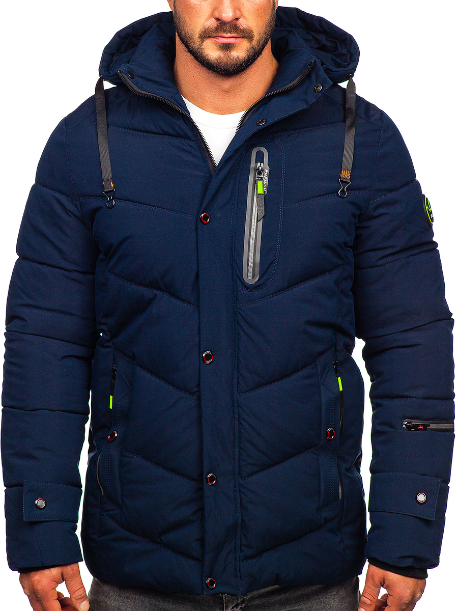 Мъжкото тъмносиньо ватирано зимно яке Bolf 22M55 е идеален избор за зимните дни. Топло, зимно яке с oтделяща се, регулируема качулка и закопчаване с тик-так копчета. Якето се закопчава с цип и тик-так копчета. Има джоб с цип на гърдите и два странични с цип, в които можеш безопасно да съхраняваш телефона, портфейла или ръкавиците си. Допълнително има малък джоб с цип на ръкава. Ръкавите се регулират допълнително с тик-так копчета и са завършени от вътрешната страна с маншети.Якето е идеално за ежедневни аутфити. Искаш ли да се открояваш? Добави към якето дънки исуитшърт с дизайнерски принт!
