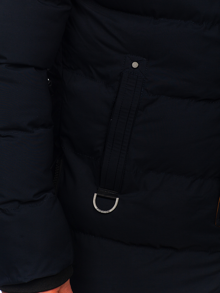 Мъжката тъмносиня капитонирана зимна парка Bolf 7330 ще ви осигури топлина в по-студените дни. Този модел се предлага в четири цветови варианта. Яке тип парка, закопчава се с цип и тик-так копчета. Има двуслойна, регулираща се с връзки качулка, както и висока яка. Двата външни джоба се закопчават с копчета, вътрешният джоб също се закопчава с копче. Якето стои перфектно на фигурата, благодарение на ръкавите, завършени с маншет от вътрешната страна. Материята на якето е изключително приятна, което дава усещане за удобство и комфорт при носене. Уникален вид му придават декоративното закопчаване отзад и удължената задна част. За ежедневна употреба го съчетайте с блуза с дълъг ръкав и дънки.