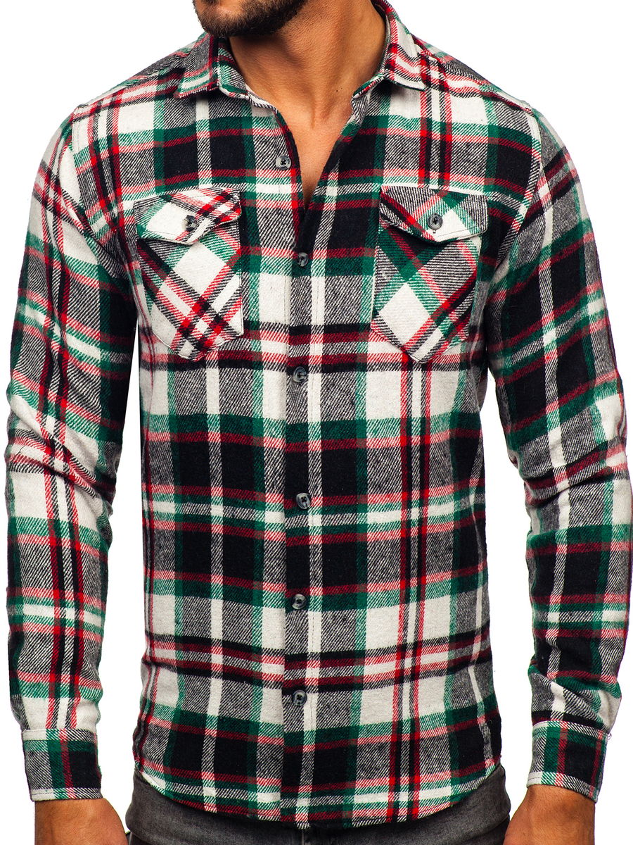 Отзиви и мнения на потребители за Червено-зелена карирана бархетна мъжка риза с дълъг ръкав Bolf 22704