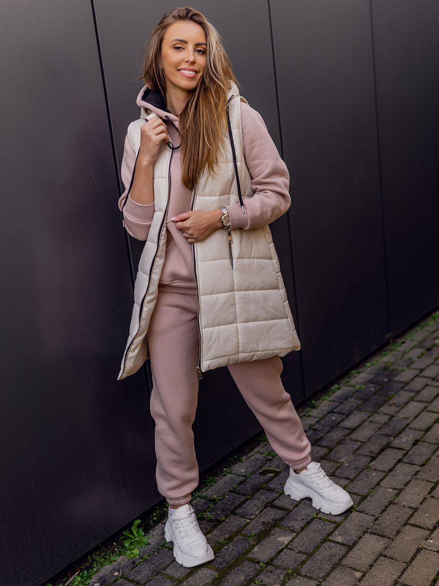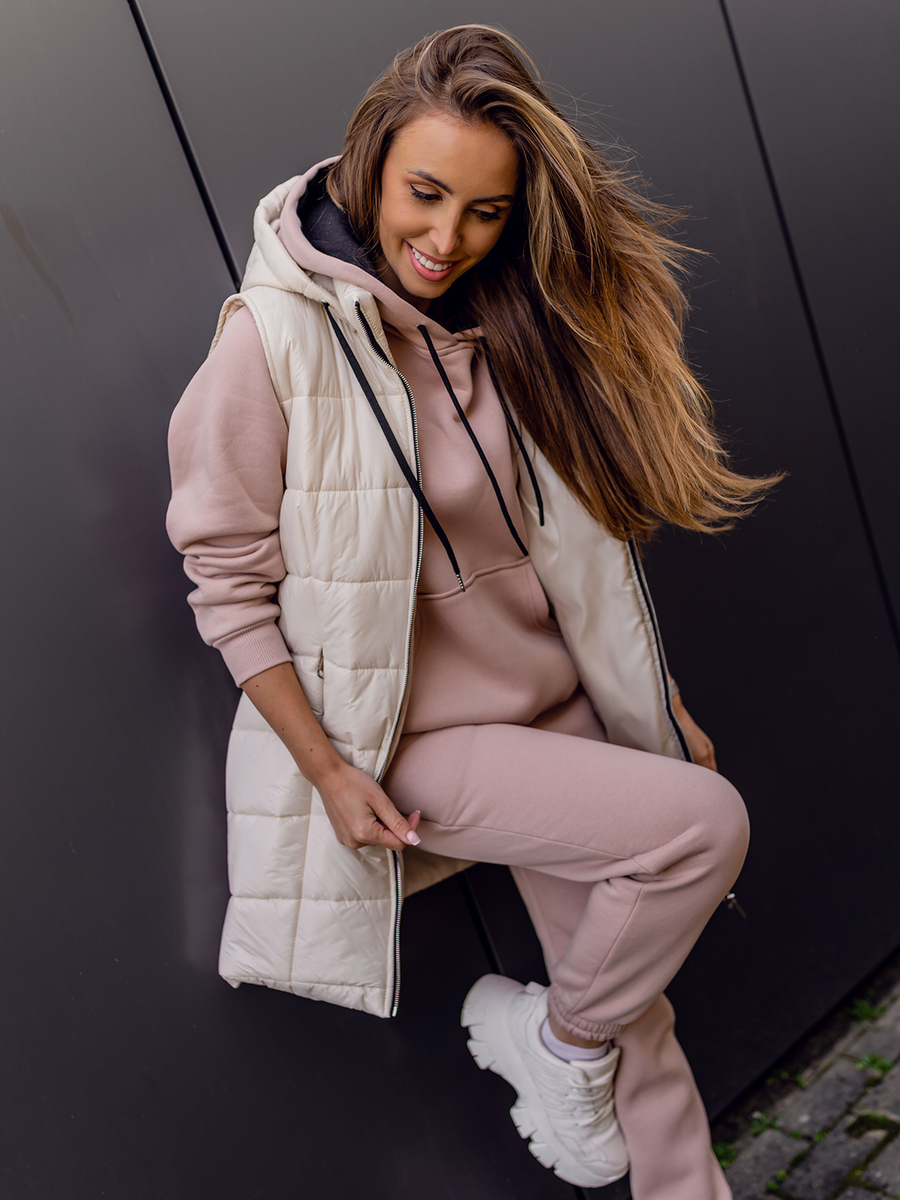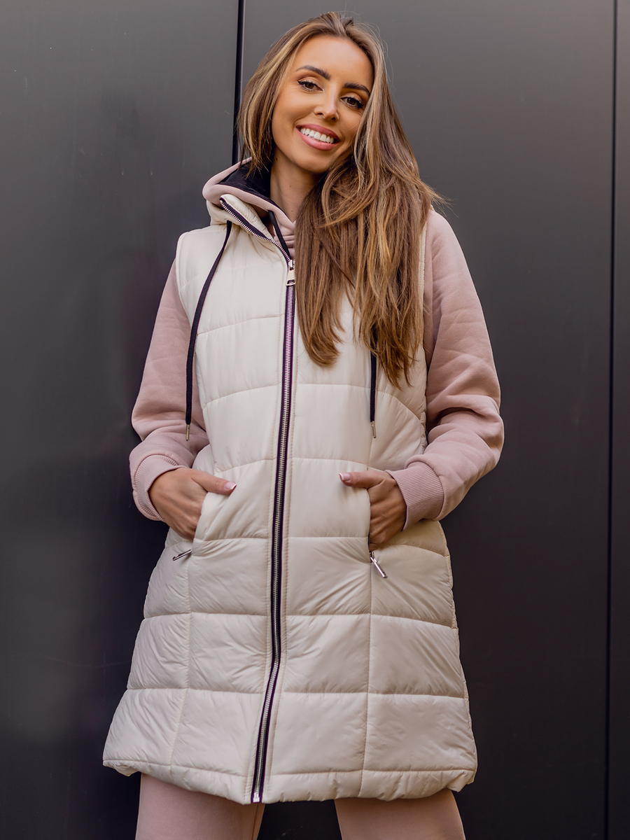 Дълъг капитониран дамски елек в цвят екрю Bolf 82019